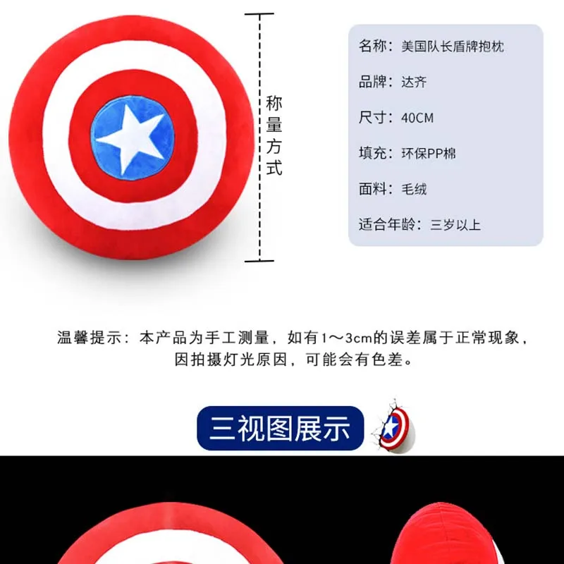 <span class="SnowProductCharacteristics_SnowProductCharacteristicsItem__titleContent__534v9">Disney Captain America Shield Plush</span> Hold Pillow Stuffed Plush Movie The Avengers Superheroes Doll