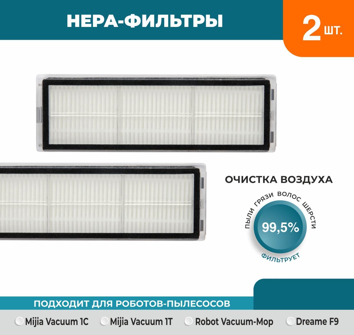 Описание: Текст при отключенной в браузере загрузке изображенийHEPA-фильтры для роботов-пылесосовНабор 2 х фильтров воздушных НЕРА с высокой производительностью фильтрации не менее 99,5%, эффективно препятствует запылению и защищает от вторичного загрязнения. Элементы без проблем устанавливаются в соответствующее отделение пылесоса и так же легко извлекаются, что способствует комфортному использованию. Комплект совместим со следующими моделями:Xiaomi Mijia 1C (STYTJ01ZHM), Xiaomi Mijia 1T (STYTJ02ZHM), Mi Robot Vacuum-Mop (SKV4093GL), Dreame F9, Dreame Bot Z10 Pro, Dreame Bot W10, Dreame Bot W10proТекст при отключенной в браузере загрузке изображенийСовместимостьСовместимость с моделью: Xiaomi, Mijia Sweeping Vacuum Cleaner 1C, Vacuum-Mop SKV4093GL, Dreame F9, STYTJ01ZHM, SKV4073CN, Mijia 2C, STYTJ03ZHM, BHR5055EU, Dreame Bot Z10 Pro, Dreame Bot W10, Dreame Bot W10pro, Dreame Bot L10s Ultra, S10+, X10+, X10 Pro, D10 PlusТекст при отключенной в браузере загрузке изображенийФильтры HEPA эффективно очищают воздух от пыли и грязиНабор фильтров НЕРА с высокой производительностью фильтрации не менее 99,5% эффективно препятствует запылению и защищает от вторичного загрязнения. Элементы без проблем устанавливаются в соответствующее отделение пылесоса и так же легко извлекаются, что способствует комфортному использованиюТекст при отключенной в браузере загрузке изображенийСекретный промокод для васПромокод действует только на аксессуары ReFill