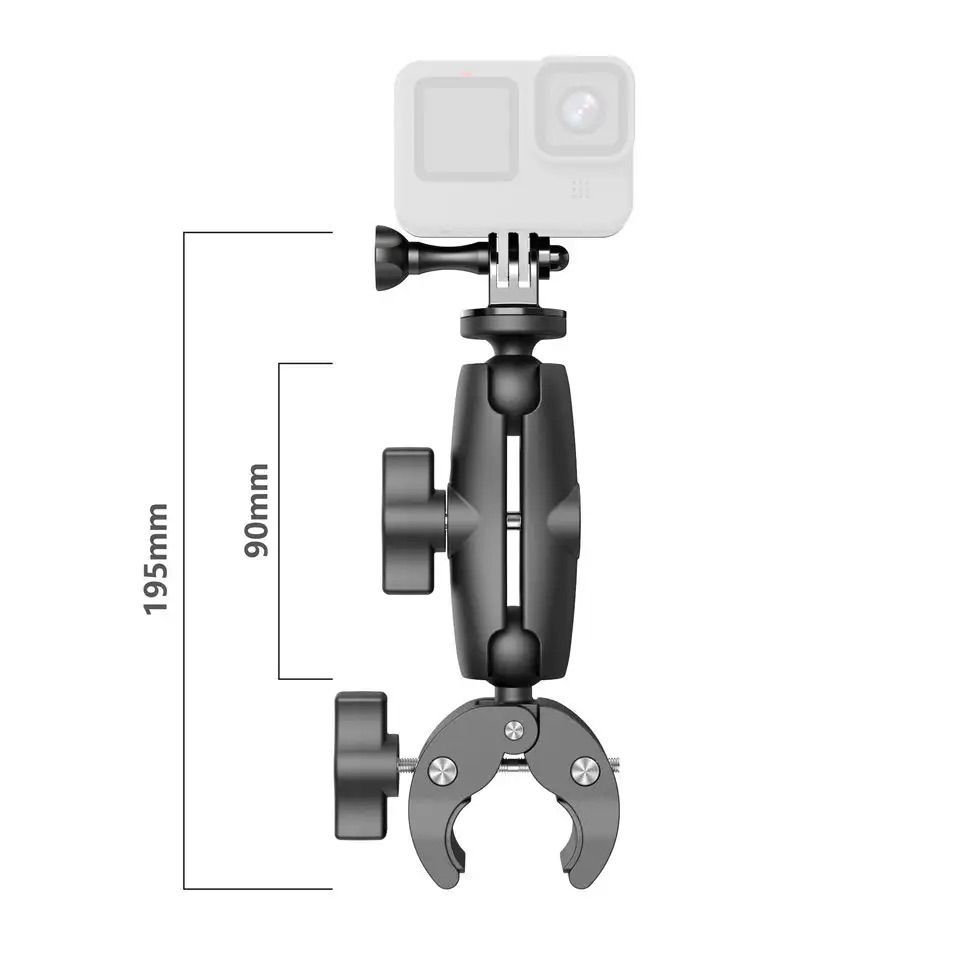 Универсальный зажим на руль позволяет установить камеру на большинство труб стандартного размера диаметром от 4,5 см до 6,5 см. Зажим для руля имеет регулируемое на 360 градусов шаровое основание, позволяет расположить камеру в необходимом ракурсе.