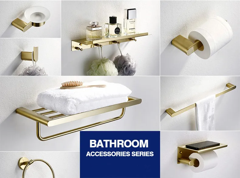 Набор аксессуаров для ванной комнаты, набор аксессуаров для ванны из матового золота, вешалка для полотенец из медного материала, держатель для бумаги, держатель для туалетной щетки, крючки