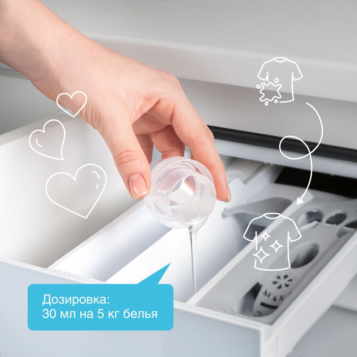 Назначение средства для стирки: Для белых тканей, Для детского белья, Для цветных тканей, Для черных и темных тканей