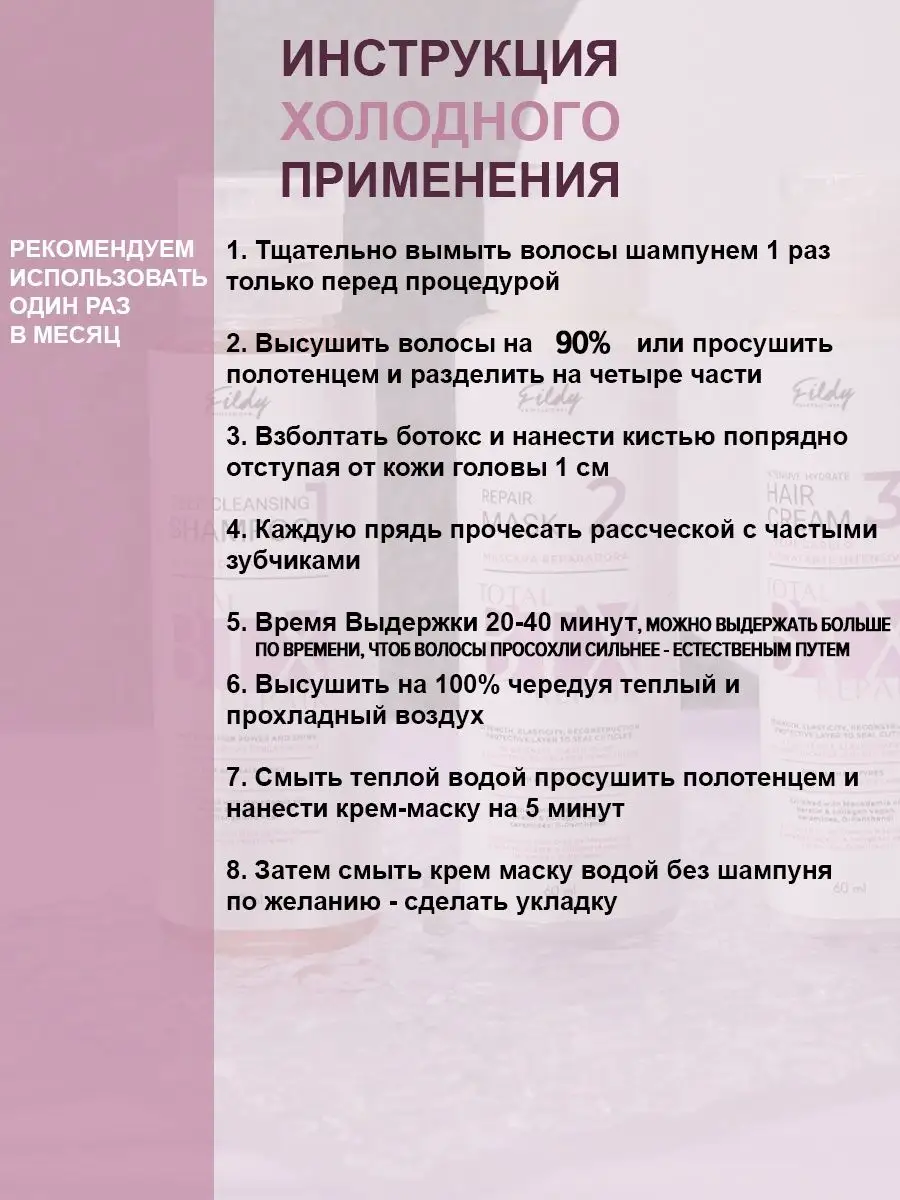 Артикул 49970137 Состав Маска для волос 25%; ботокс для волос 50%; Шампунь с коллагеном 25%