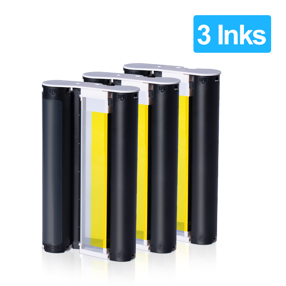 108 Photo Papers and 3 ink cartridges in total, replacement for canon selphy KP-108IN or 3x KP36IN photo paper sets. Size: 148mm x 100mm, A6. Each cartridge can print 36 sheets photo paper.