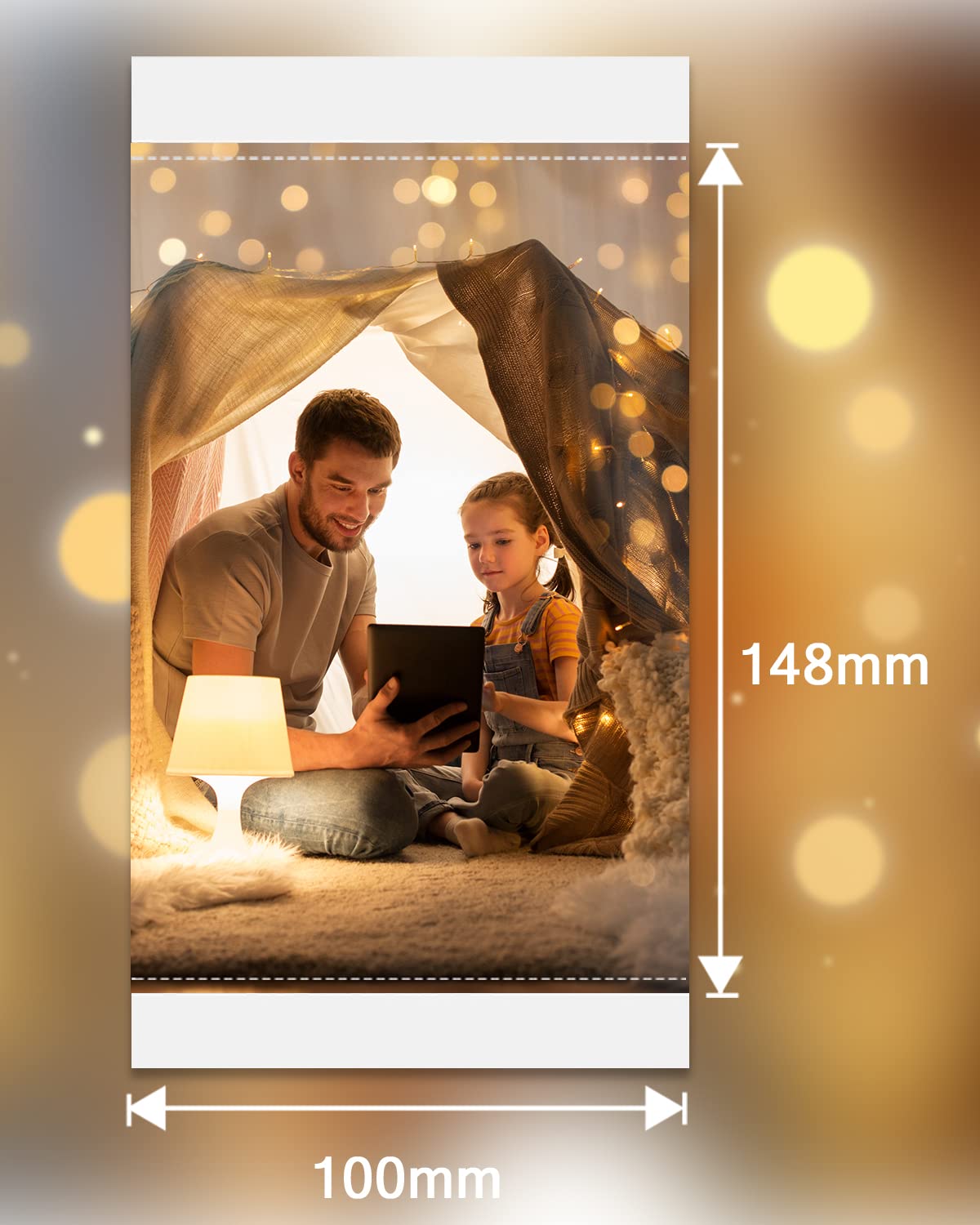 Dye sublimation technology for instant dry, Smudge-free, Water resistant, Anti-fingerprint, Anti-oxidation. Photo will be covered automatic by protective film after print, so you can keep it for a long time. It can print high gloss and colorful photo, best for you to keep your good memories