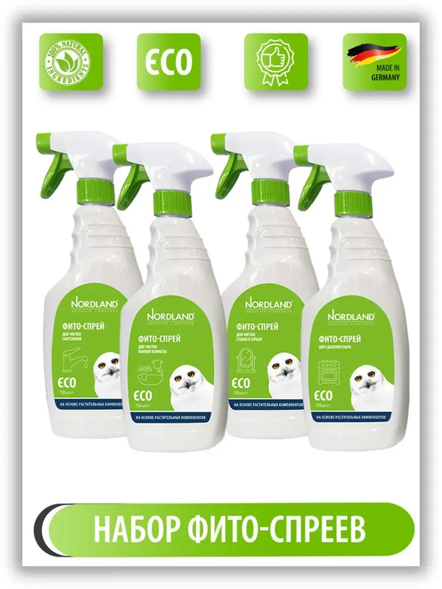 Описание: В наборе 4 фито-спрея NORDLAND на основе растительных компонентов: Набор содержит средства для чистки сантехники: раковин, ванн, джакузи, бассейна, кранов, биде, душевых насадок, эмалированной сантехники и изделий с хромированным покрытием, фаянсовых изделий, кафельных покрытий и пластиковых панелей; для чистки и ухода за всеми видами ванн, стеклянными и кафельными поверхностями для очистки и придания блеска зеркальным поверхностям, оконным стеклам, стеклянным столам; для удаления жировых загрязнений с любых поверхностей вашей кухни. Состав и биоразлагаемая формула средства позволяет использовать его в домах с септиками.