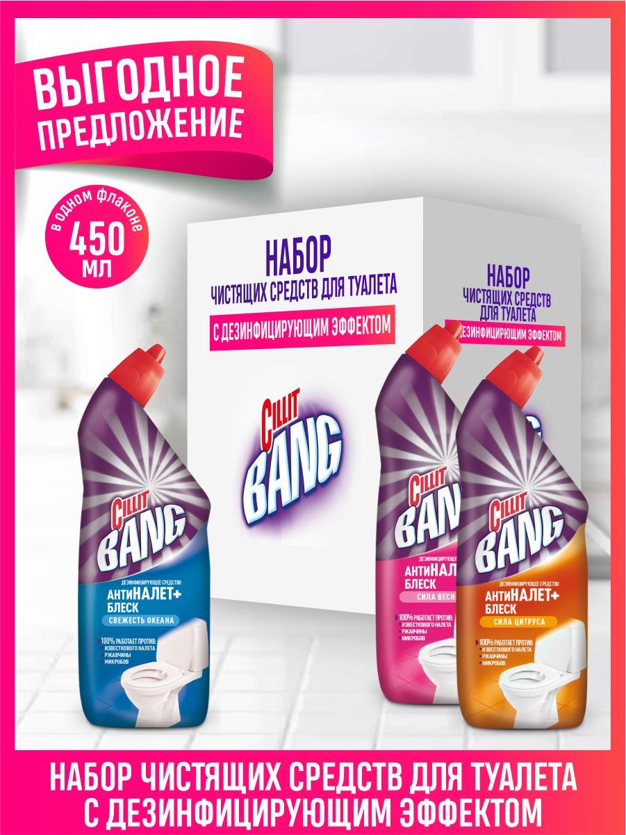 Набор CILLIT BANG Антиналет+Блеск Океан, Антиналет+Блеск Сила весны, Антиналет+Блеск Сила цитруса