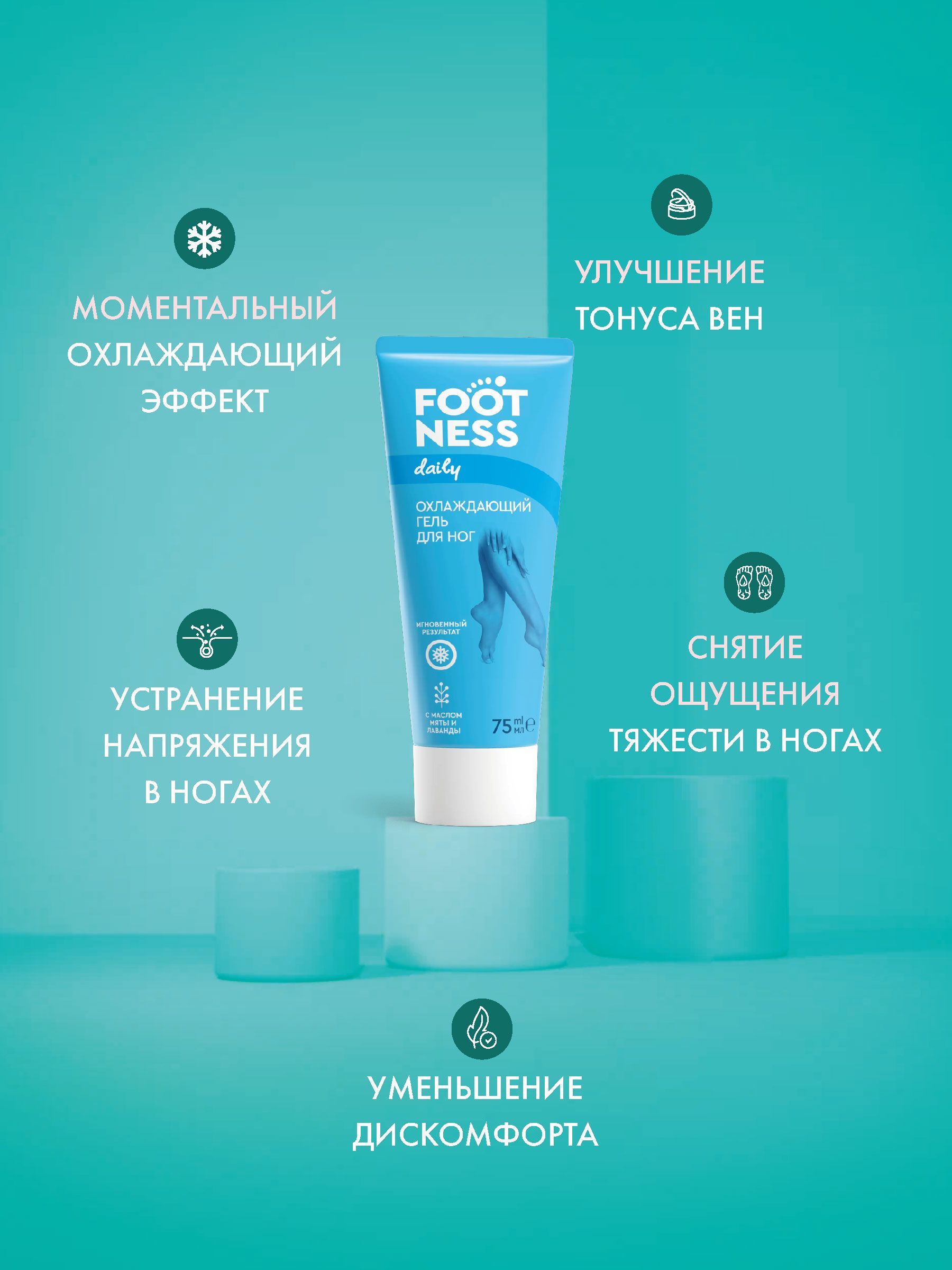 ОХЛАЖДАЮЩИЙ ГЕЛЬ ДЛЯ НОГMгновенно и на длительный срок снимает усталость, ощущение тяжести в ногах и устраняет напряжение.