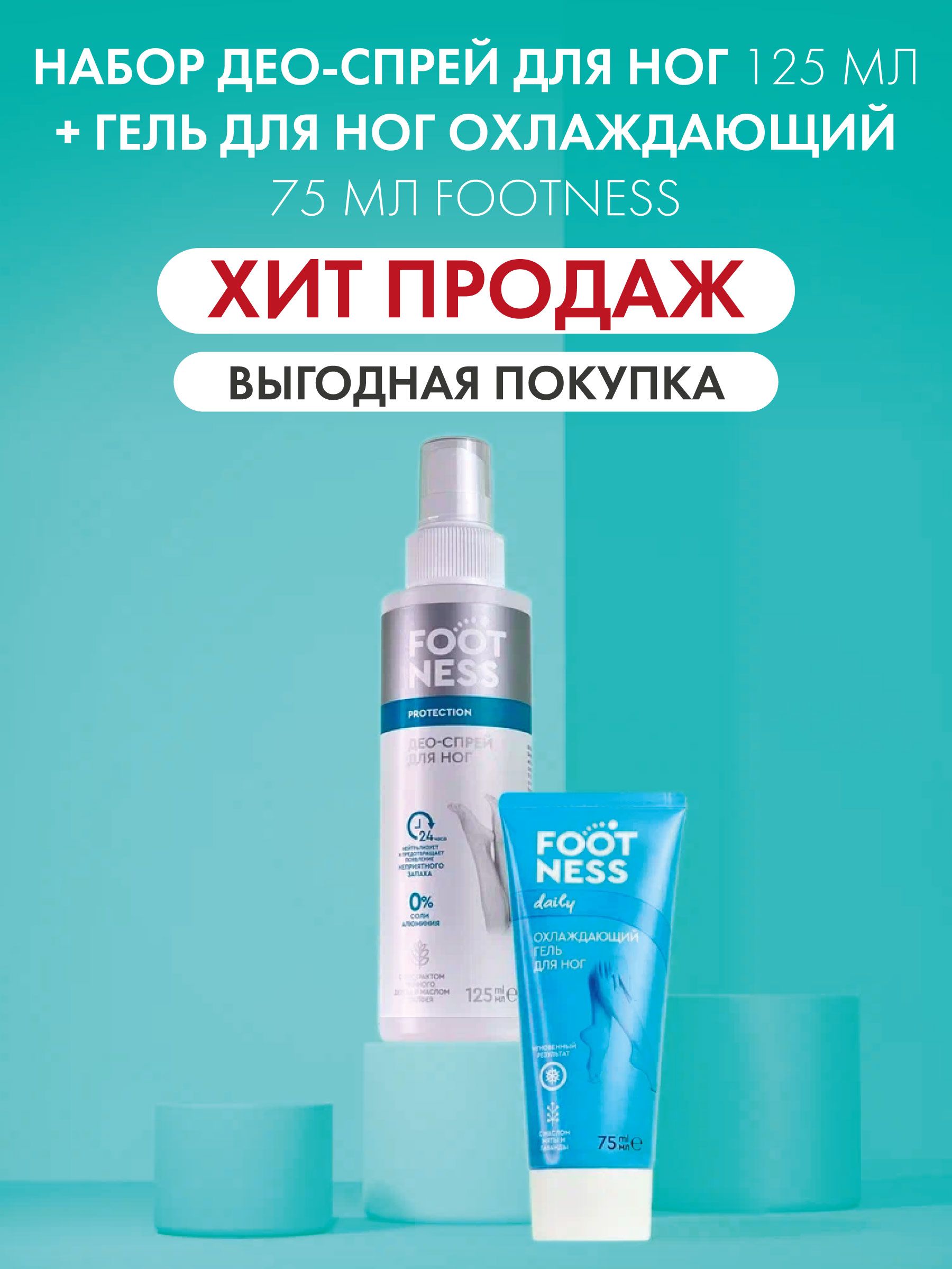 Набор Део-спрей для ног 125 мл; Гель для ног охлаждающий 75 мл Footness