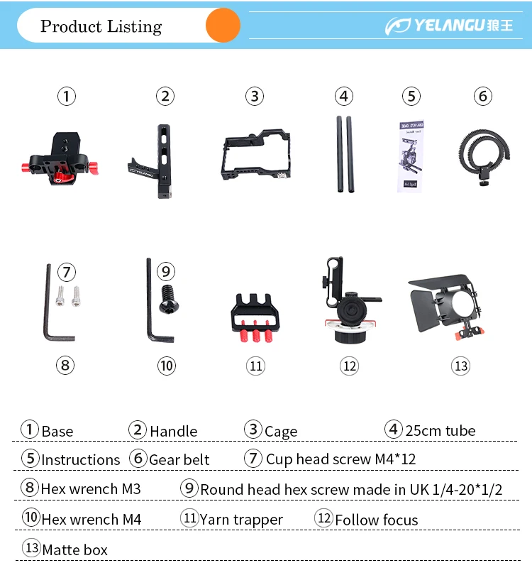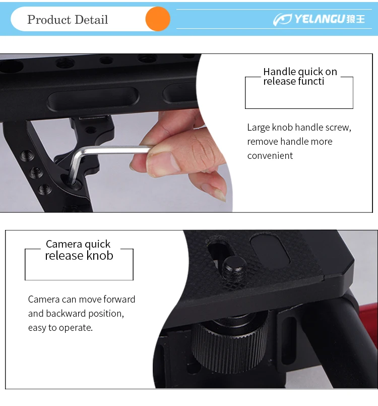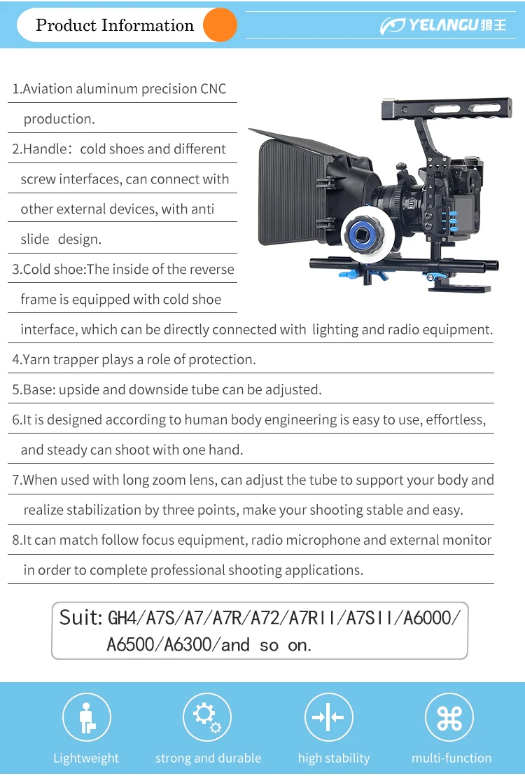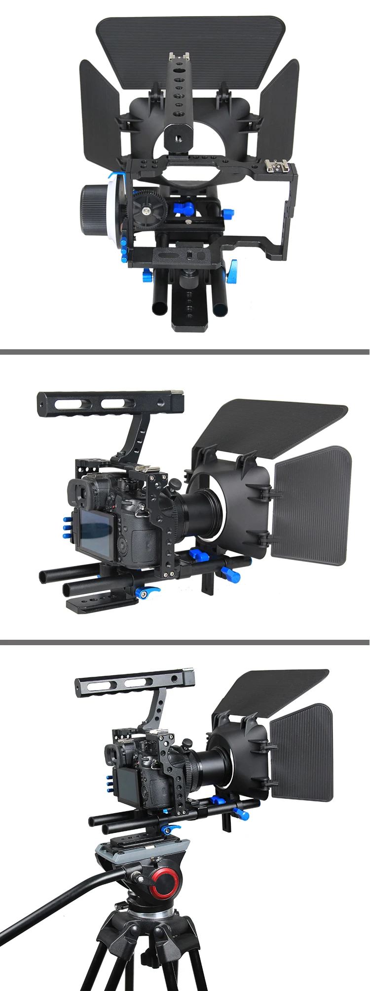 1. Набор для клетки камеры оснащен ручкой для непрерывного фокуса и затенения, что более удобно для видеосъемки.