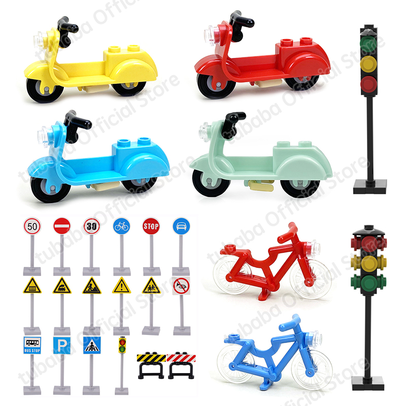 Набор деталей для конструктора, дорожные знаки, мотоциклы, велосипеды совместимые с Lego, в ассортименте