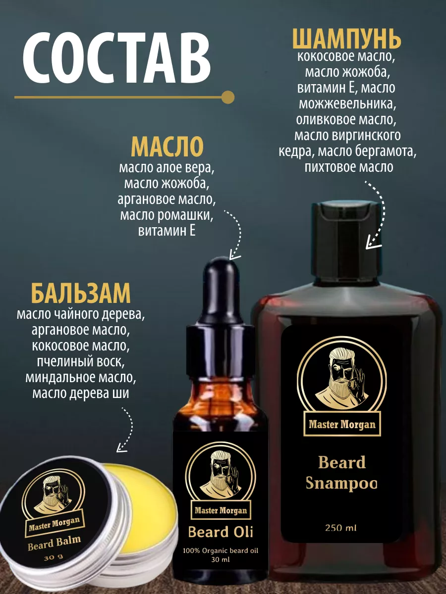 Комплектация Масло для бороды и усов; Шампунь для бороды; бальзам для усов и бороды