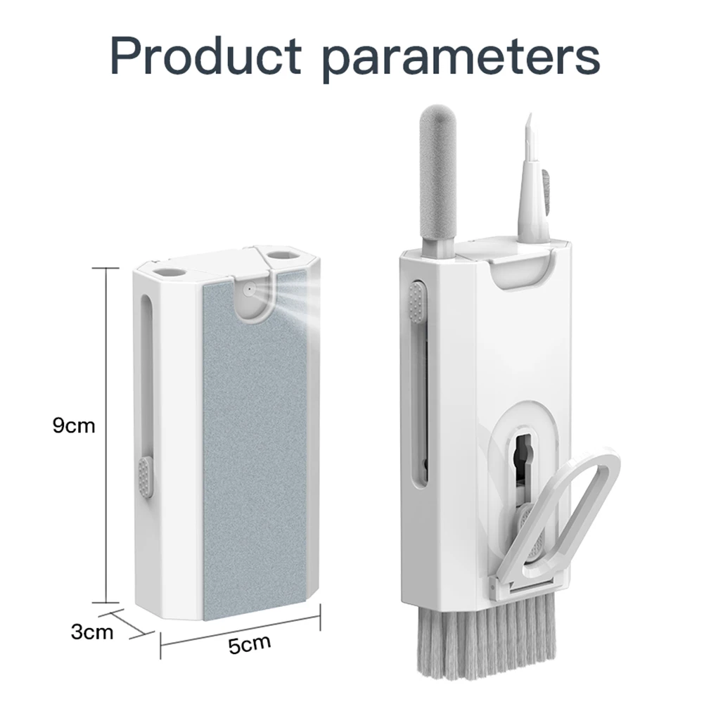 2. Многофункциональный дизайн:Кончик пера может удалить стойкие пятна в зазоре между наушниками, кнопками и другими предметами, не повреждая порт зарядки наушников; Щетка может удалить грязь и пыль из звукового отверстия наушников; флокирующая губка может удалить пыль с зарядного устройства гарнитуры; Протирочная ткань, прикрепленная к задней части коробки, используется для очистки небольших участков пыли, таких как экран мобильного телефона; Держатель мобильного телефона можно использовать для размещения мобильного телефона; встроенный Съемник клавиш можно использовать для извлечения крышки клавиш механической клавиатуры.