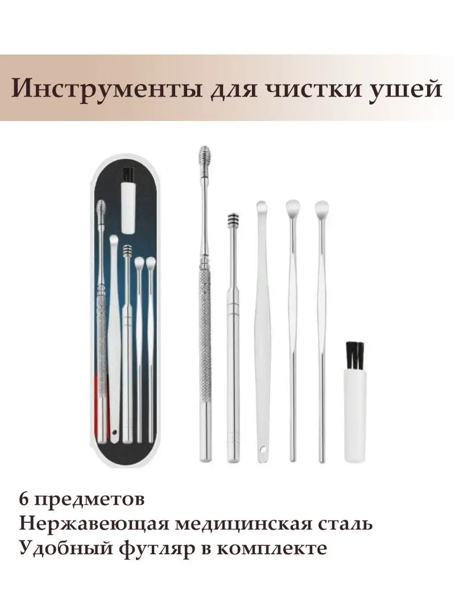Артикул 151889406 Количество предметов в упаковке 6 шт.; набор инструментов для чистки ушей; палочка для чистки ушей