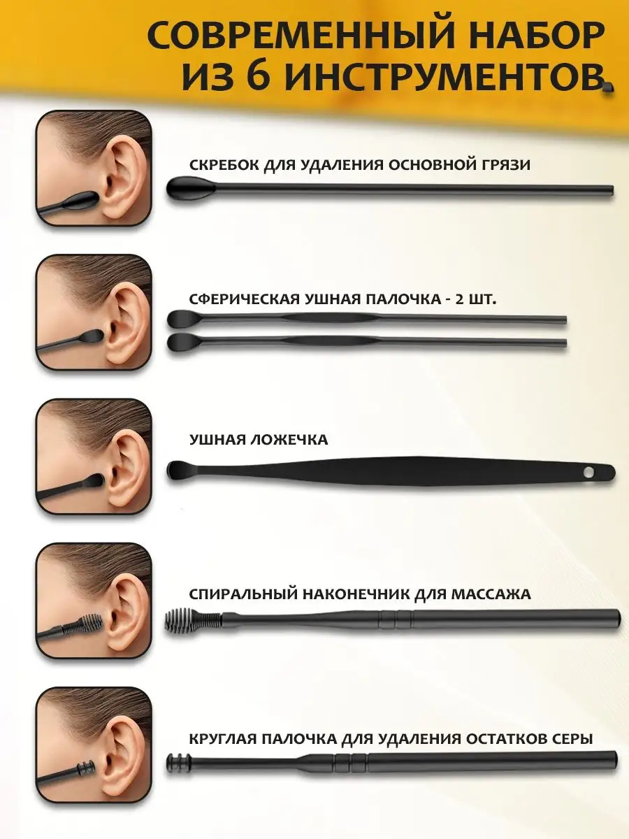Комплектация кейс для инструментов; Инструменты для чистки ушей 6 шт