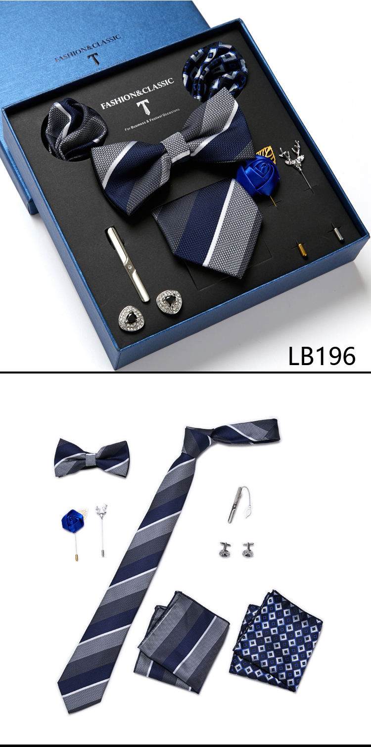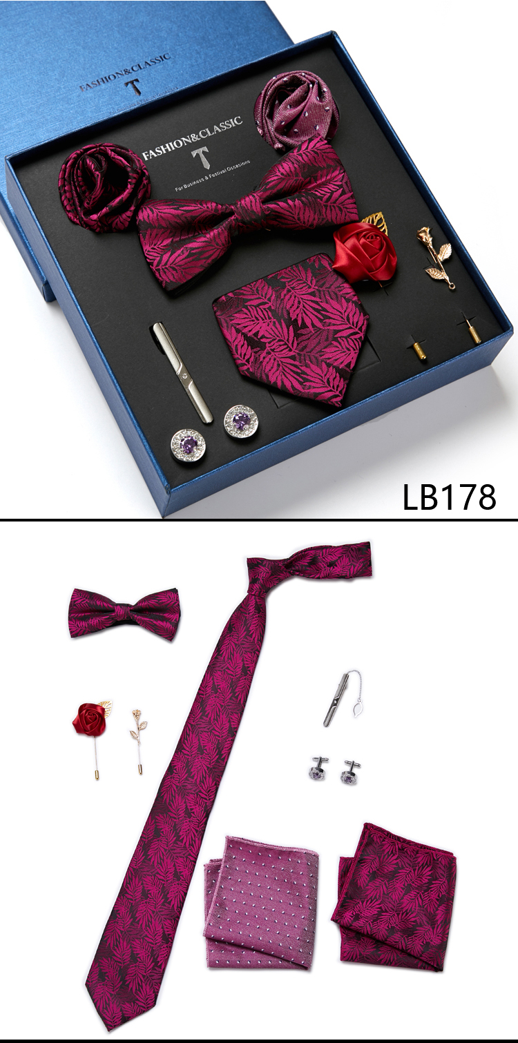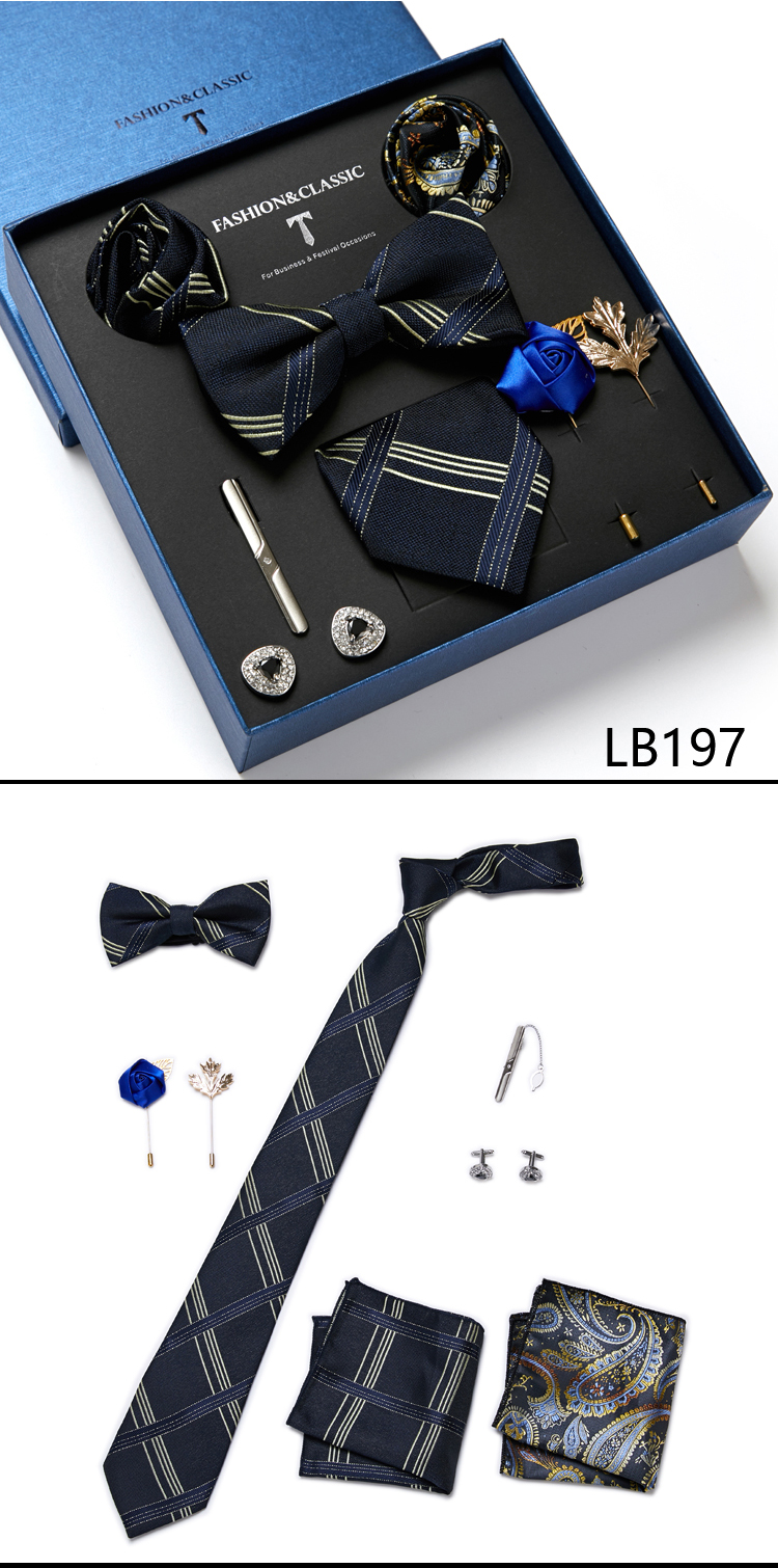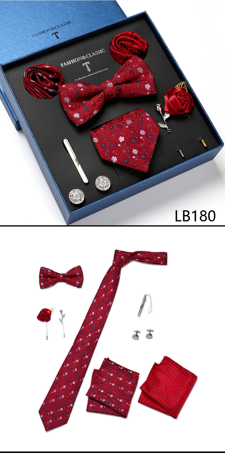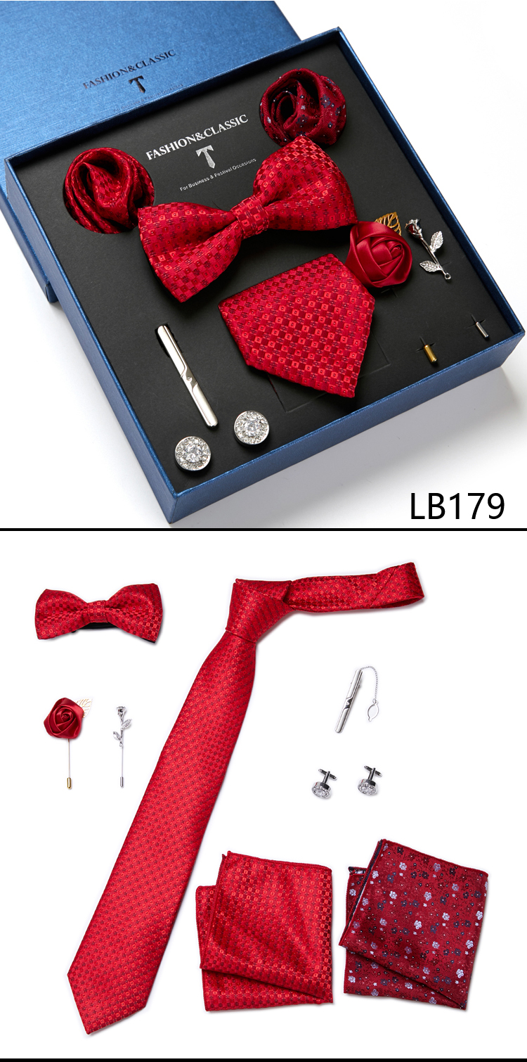 Состояние: всего 8 шт. упакованы в красивую подарочную коробку (включает 1 галстук, 1 галстук-бабочку, 2 Запонки, 1 зажим для галстука, 2 булавки на лацкан и 2 кармана в квадрат)