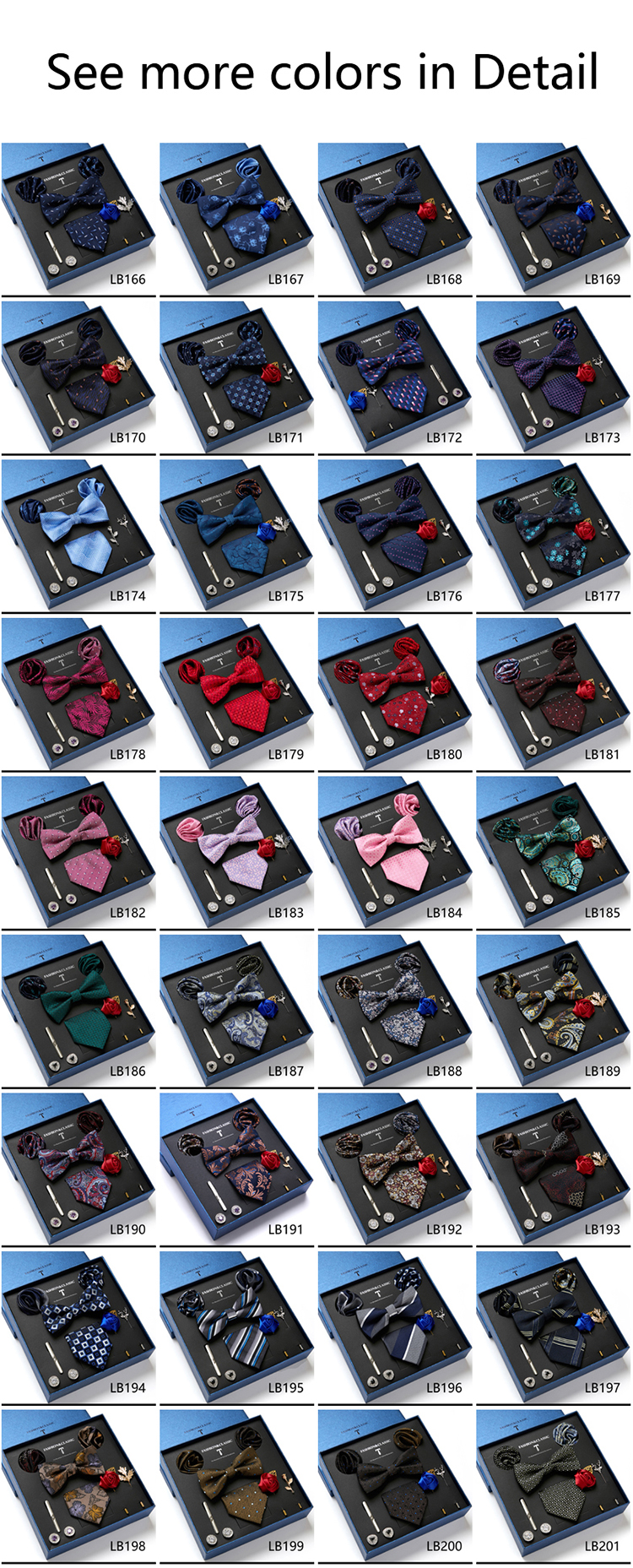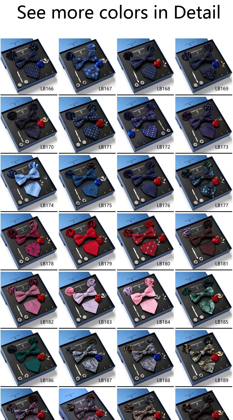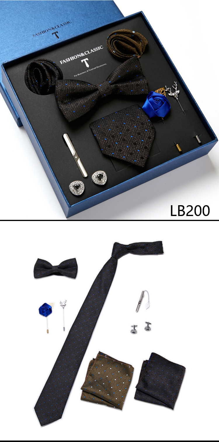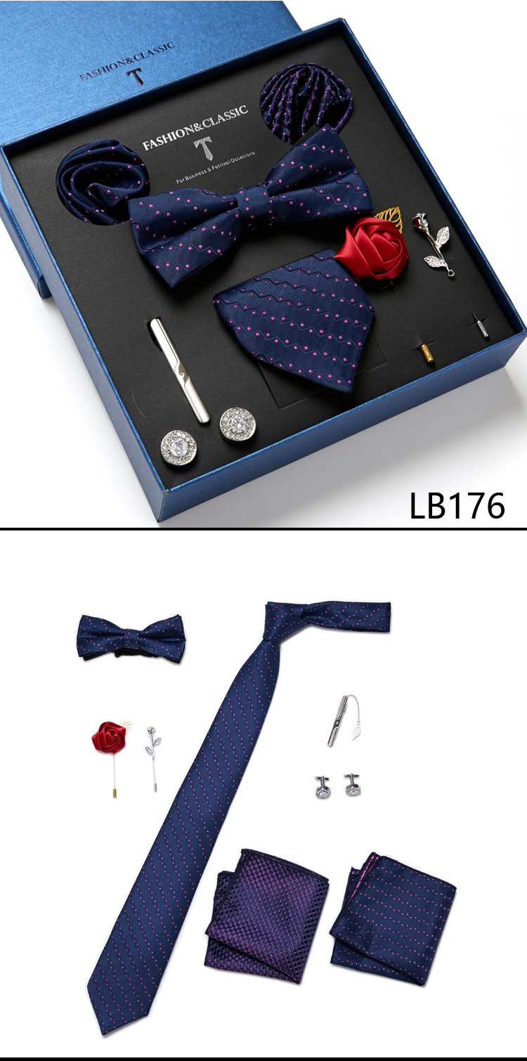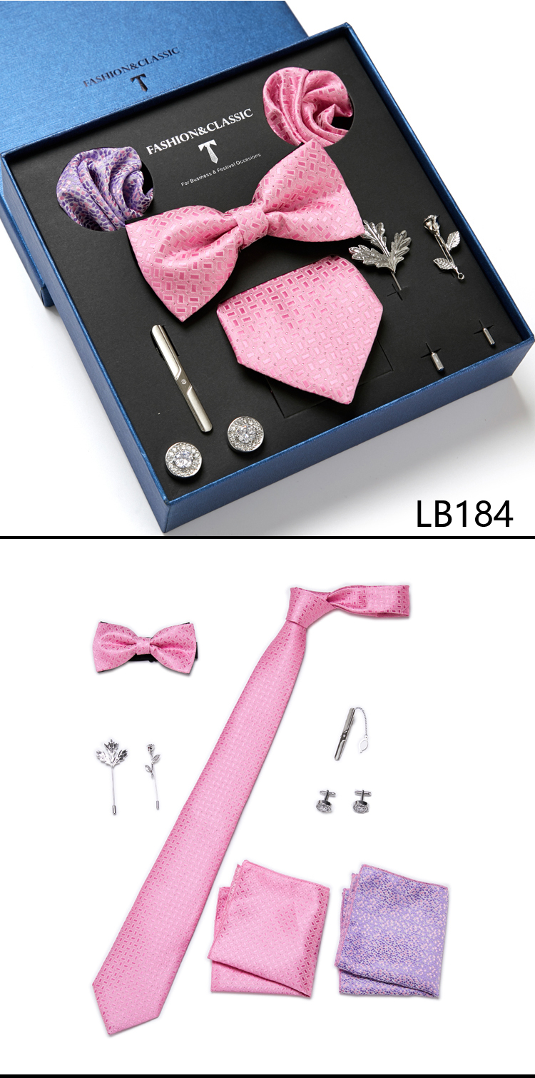 Состояние: всего 8 шт. упакованы в красивую подарочную коробку (включает 1 галстук, 1 галстук-бабочку, 2 Запонки, 1 зажим для галстука, 2 булавки на лацкан и 2 кармана в квадрат)