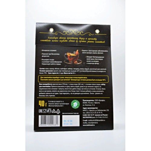 Изюм, корица, яблоко, грейпфрут, имбирь, гвоздика, лимон, бадьян, мускатный орех молотый.
