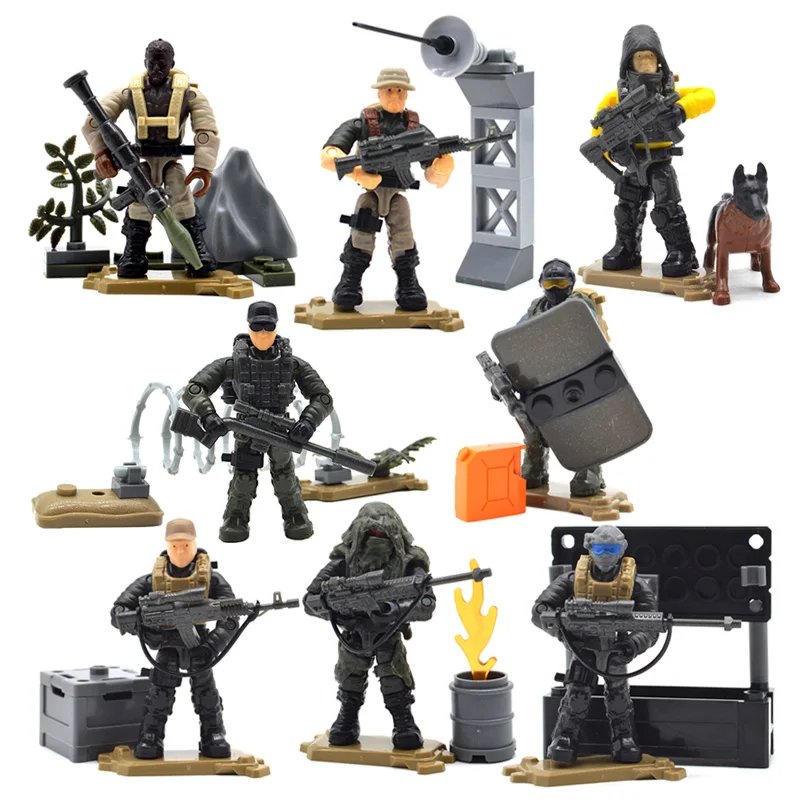 Набор для игр, армия, солдаты, спецназ, Военная серия с оружием, телескоп, строительные блоки, кирпичи, игрушки для детей