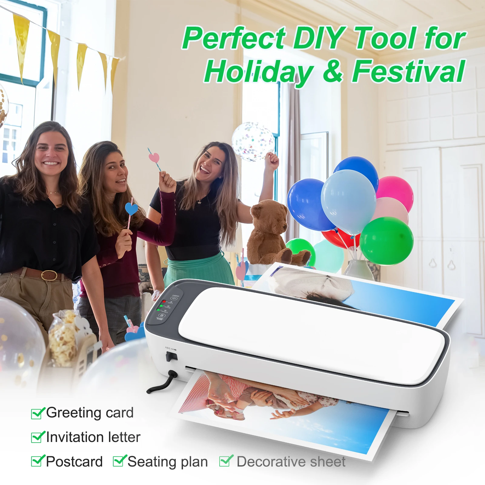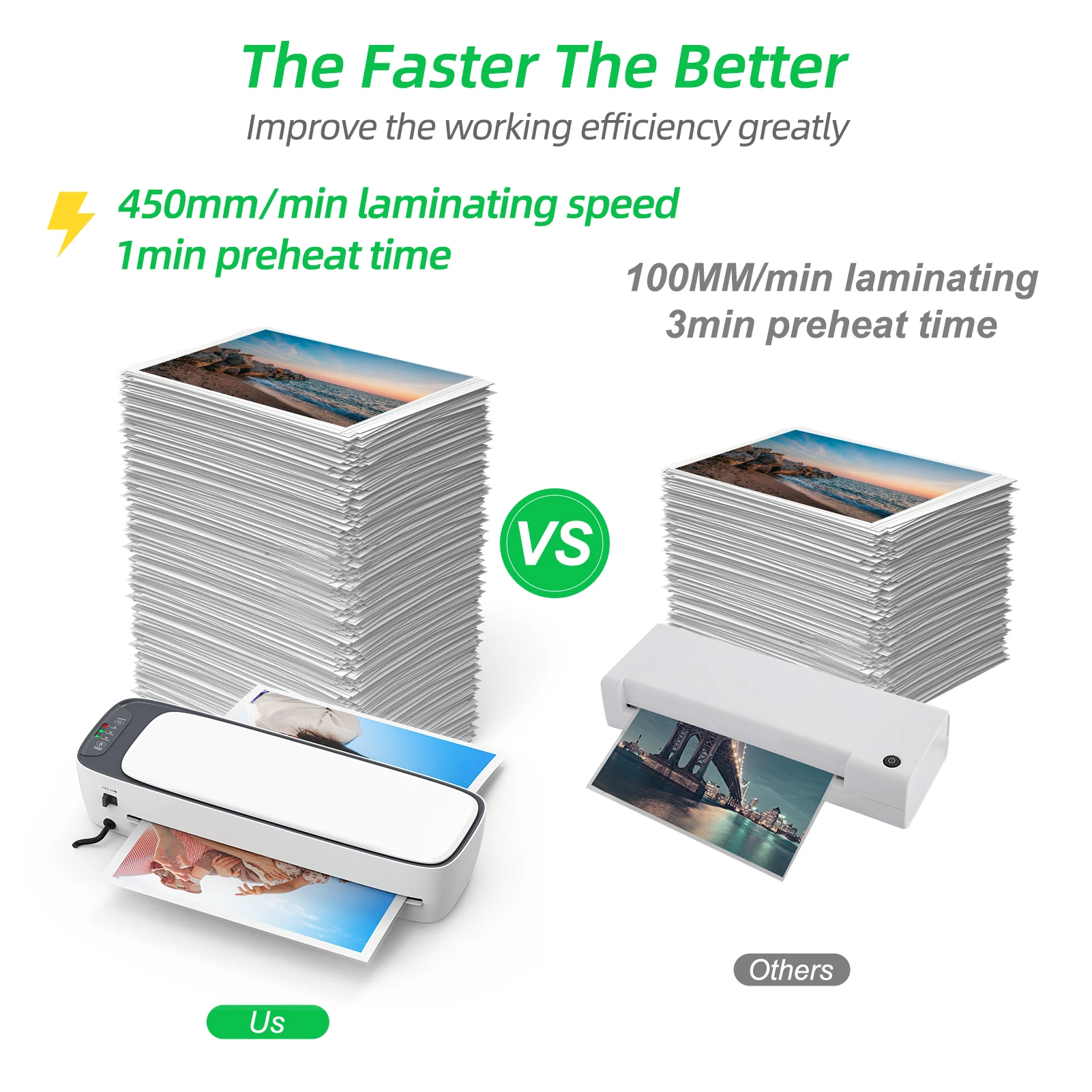 Быстрая скорость ламинирования: с впечатляющим временем нагрева в 1 минуту и скоростью ламинирования до 370 мм/мин, быстрее, чем большинство ламинаторов на рынке, высоко повышает вашу эффективность работы.