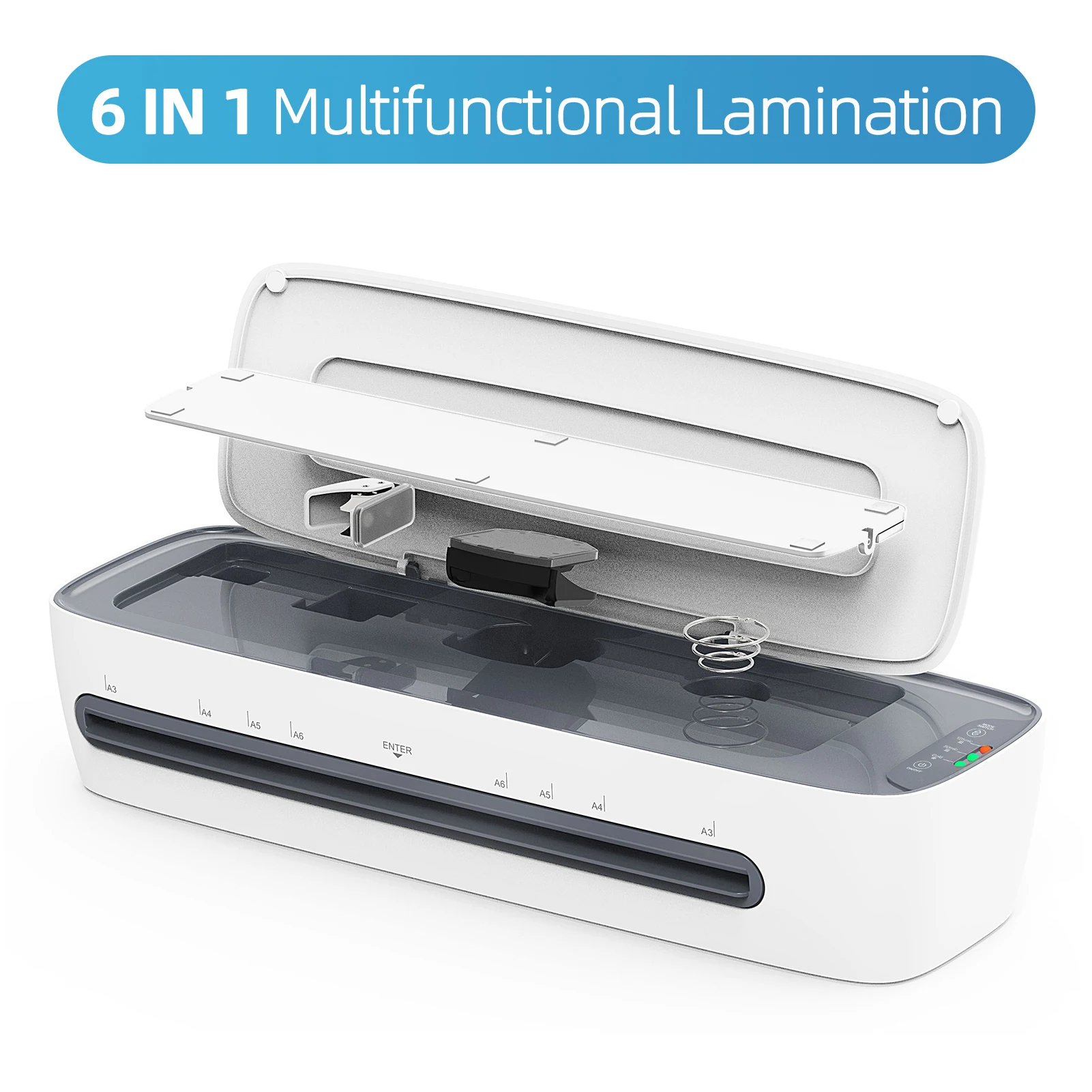 6 в 1 Многофункциональный: SL688 Ламинатор поставляется с 6 функциями, чтобы удовлетворить ваши потребности, включая Горячее ламинирование и холодное ламинирование, резак для бумаги, угловая камбала, Дырокол и обруч, вы можете наслаждаться всеми удобствами в этом наборе ламинаторов. С шириной входа 320 мм/12,5 дюйма, подходит для бумаги формата A3/ A4/A5/A6, которая отвечает всем вашим потребностям.