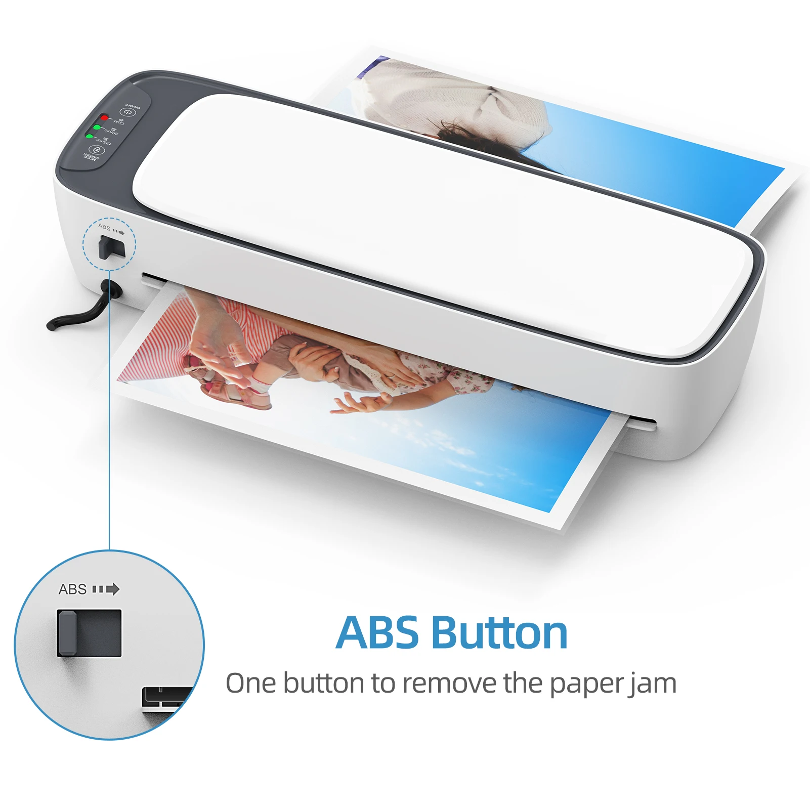 Интеллектуальный чип ядра: оснащен умной системой контроля температуры NTC, точно поддерживает температуру в качестве ламинирования. И ламинатор автоматически отключит питание после 15 минут бездействия.