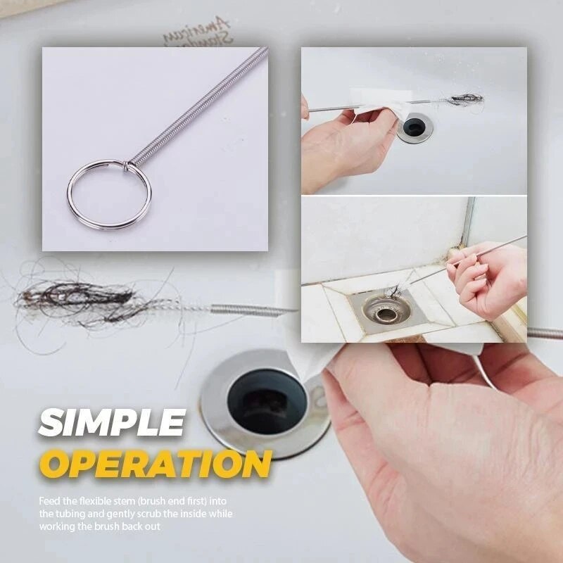 Подайте гибкий стержень (сначала конец щетки) в трубку и аккуратно потрите внутреннюю часть, выверните щетку обратно. Гибкий, но прочный корпус из проволоки с легкостью прорывается и уходит глубоко в любой сток.