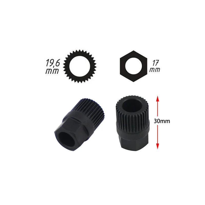 • 1 шт. Гайка генератора с 33 зубьями с шестигранным концом 17 мм и 19,7 мм на зубчатом конце