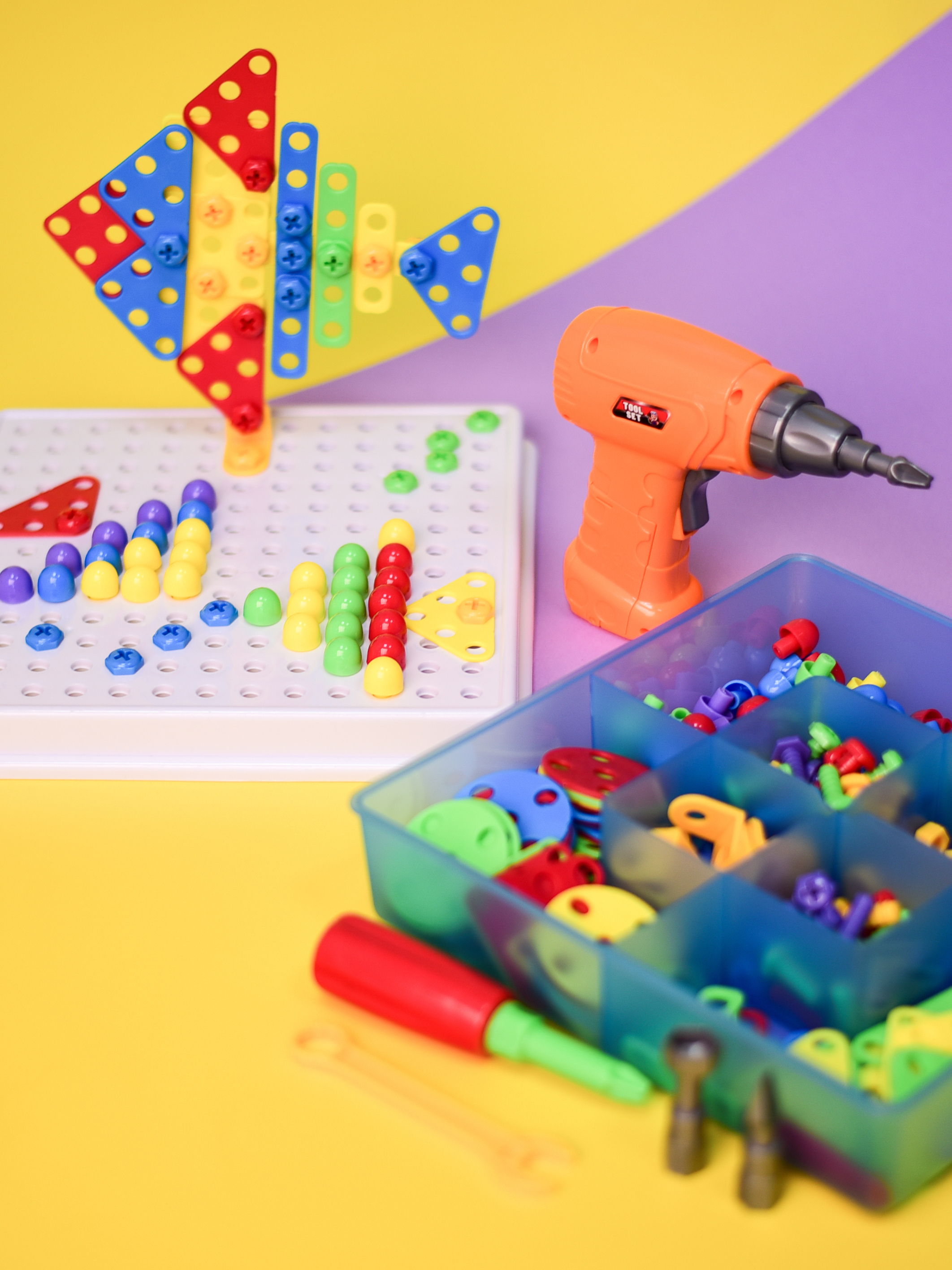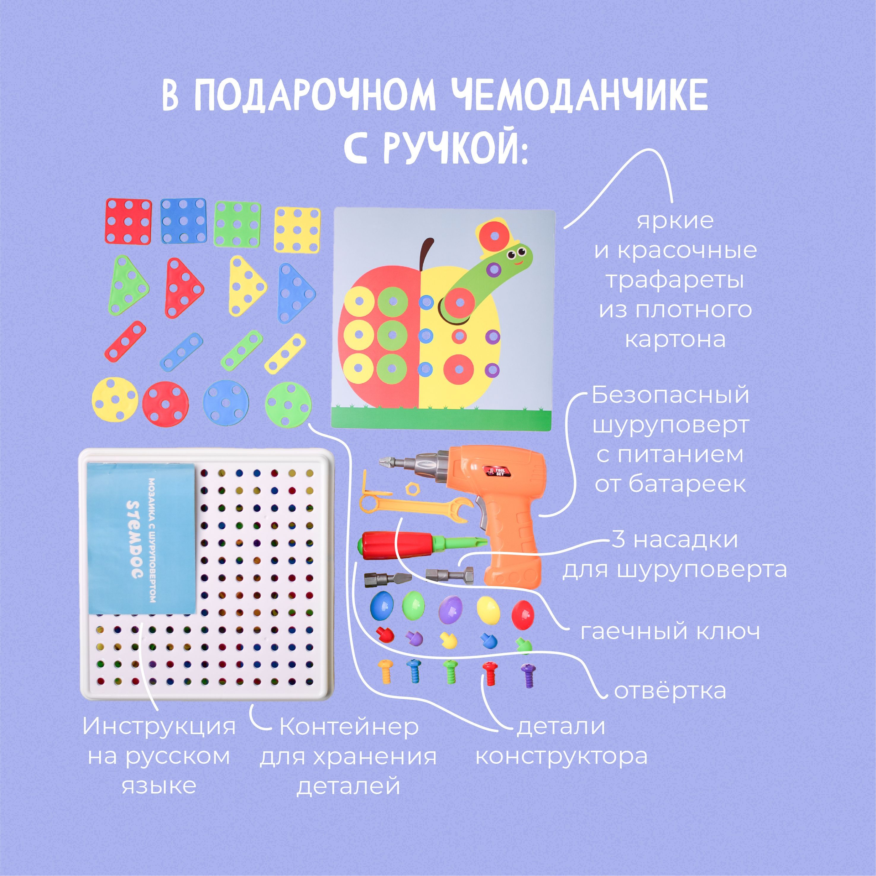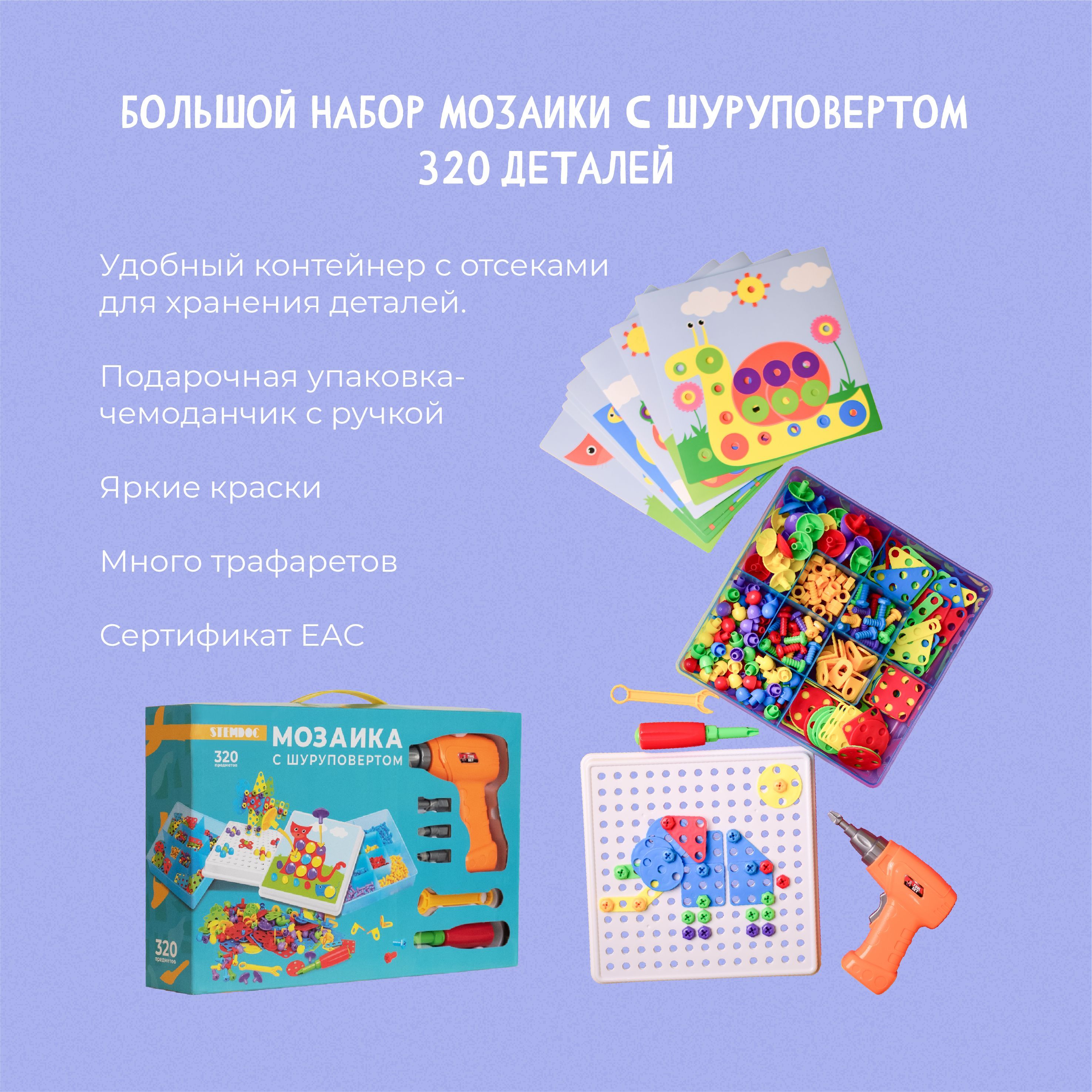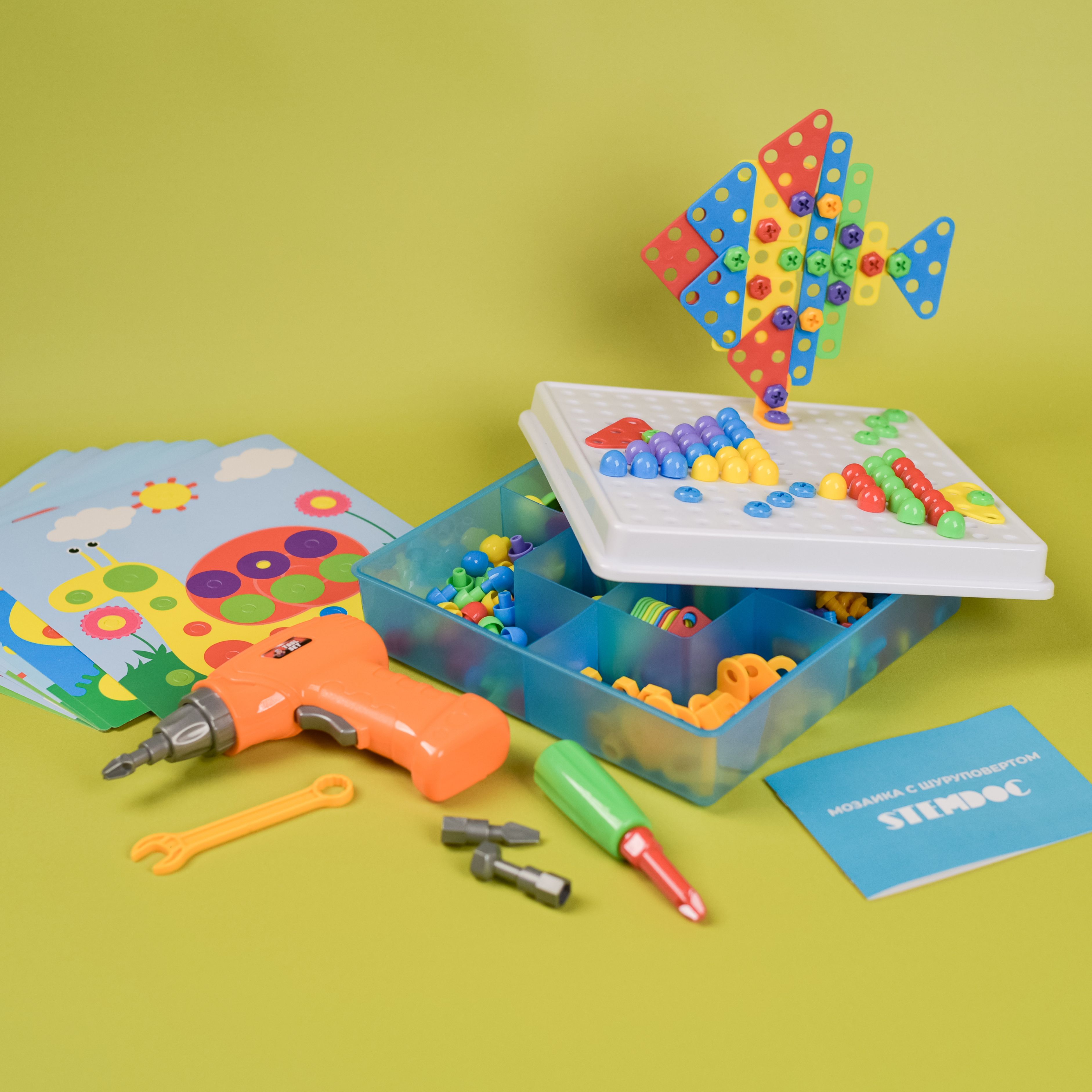 Набор для творчества для для девочек и мальчиков мозаика с шуруповертом STEMDOC - 320 предметов