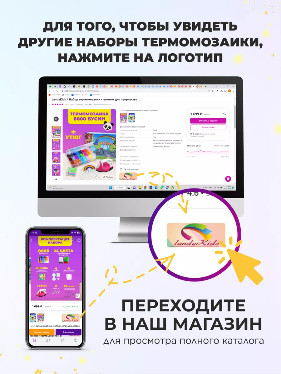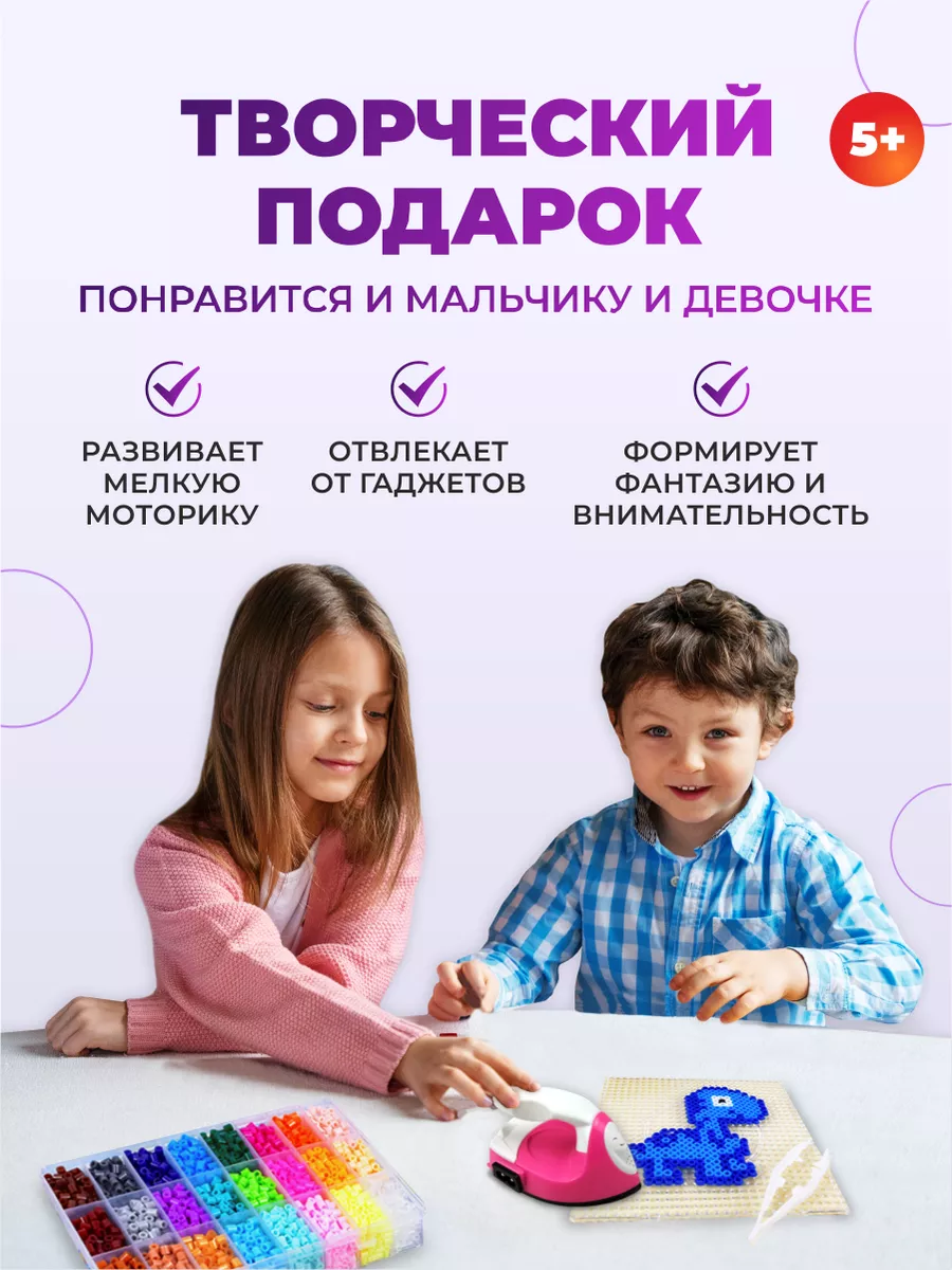 Артикул 132457683 Количество элементов утюг для термомозаики; бусины 8000 деталей; термомозаика для мальчиков