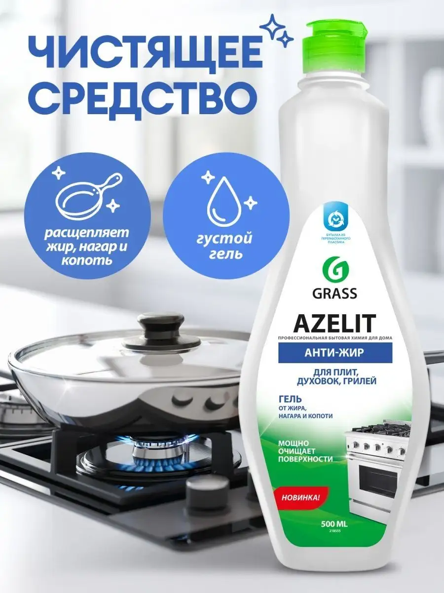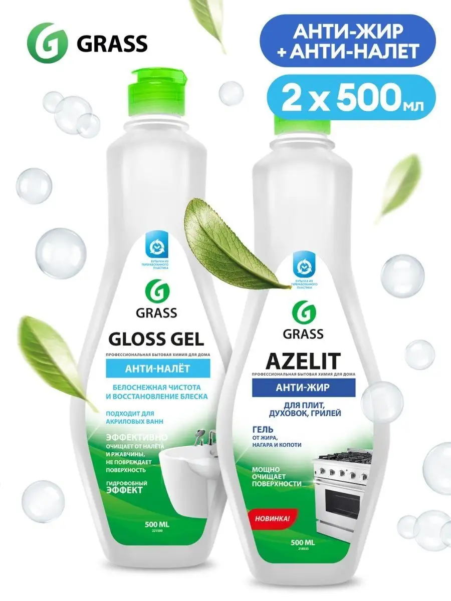 Описание: Набор для уборки дома Grass - это универсальные чистящие средства Азелит гель и Глосс 500 мл. Средства станут прекрасными помощниками в уборке кухни, ванной комнаты, душевых кабин, чистки посуды, сантехники, унитаза, фаянсовых изделий и кафеля. Эффективно удаляют известковый налет, подходит для удаления ржавчины, плесени, мыльных разводов и солевых отложений. Чистящее средства Gloss эффективно удаляет сложные и застарелые загрязнения, прекрасно заменит средства с белизной. Безопасно для акриловых ванн и работает как отбеливатель. Можно использовать как моющее средство для окон и пола. Чистящее средство Azelit анти жир для кухни эффективно удаляет жир, нагар, копоть и пригоревшие продукты с эмалированных и хромированных поверхностей, изделий из стекла, нержавеющей стали, фаянса, фарфора. Используется для мытья сковородок, чистки плиты, мультиварок, духовок, фритюрниц, грилей, духовых шкафов, микроволновых печей.