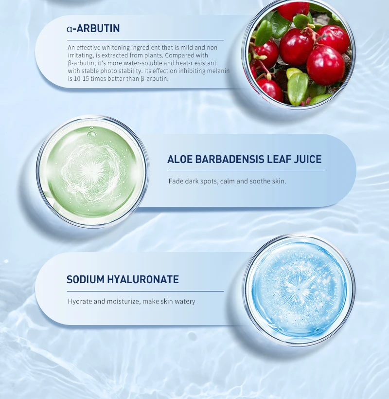 В обновленном рецепте, основанном на существующей серии ретинола, революционный ретинол и арбутинар слиты и после этого добавлены в сыворотку предварительного ретинола моистуризинг для того чтобы исправить Множественные проблемы кожи. Ретинол известный ингредиент на анти-вызревании и арбутинвил также играет хорошую роль на забеливать кожи. Эта сыворотка может быстро проникать в кожу, разрушая меланин и фиксируя поврежденную кожу, делая кожу более гладкой и белой. Он также может увлажнять клетки, делая кожу пухлой и сморщенной.