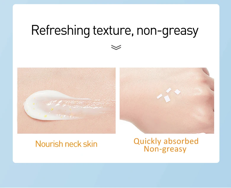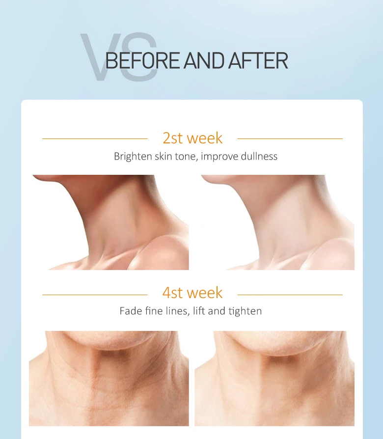 Известно, что с возрастом кожа начинает терять упругость и эластичность, но кожу шеи всегда игнорируют при уходе за кожей. Растущие линии шеи лишают уверенности в собственной красоте. Революционный ретинол и Ниацинамид объединяются и добавляются в этот крем для шеи для устранения многочисленных проблем с кожей. Ретинол и Ниацинамид стимулируют отрастание белка коллагена и живые клетки, фиксируя глубокие морщины на шее и предотвращая появление тонких линий на шее.