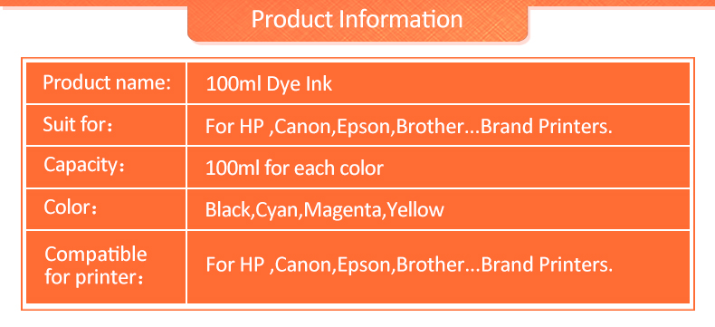 1 шт. Набор для заправки чернил Чернила на основе красителя на водной основе 100 мл чернил для бутылок