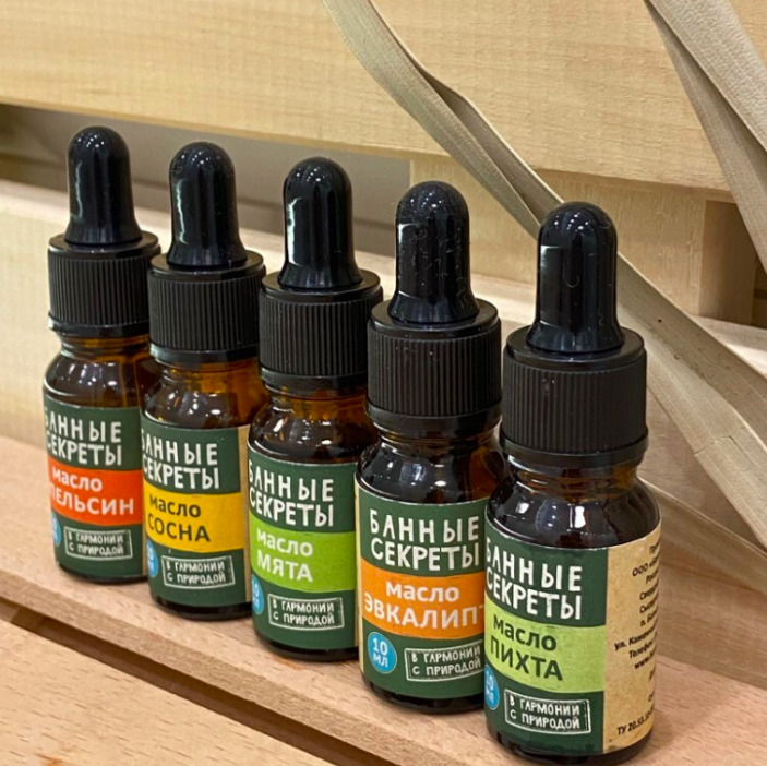 Набор эфирных масел- апельсин, сосна, мята, эвкалипт, пихта по 10 мл.