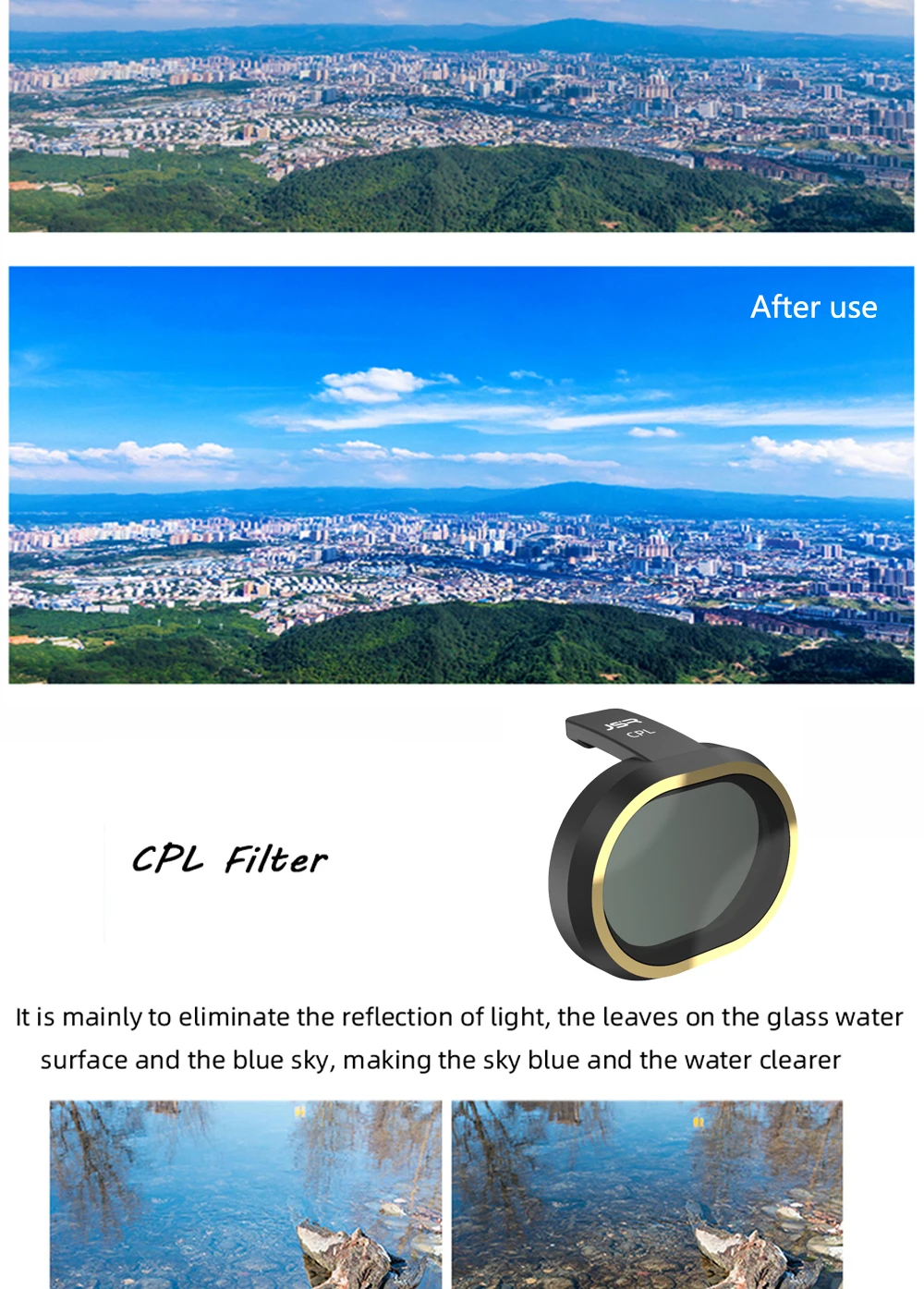 Increases color saturation, creating deep, rich scenic images.Helps to reduce the amount of light entering the lens.