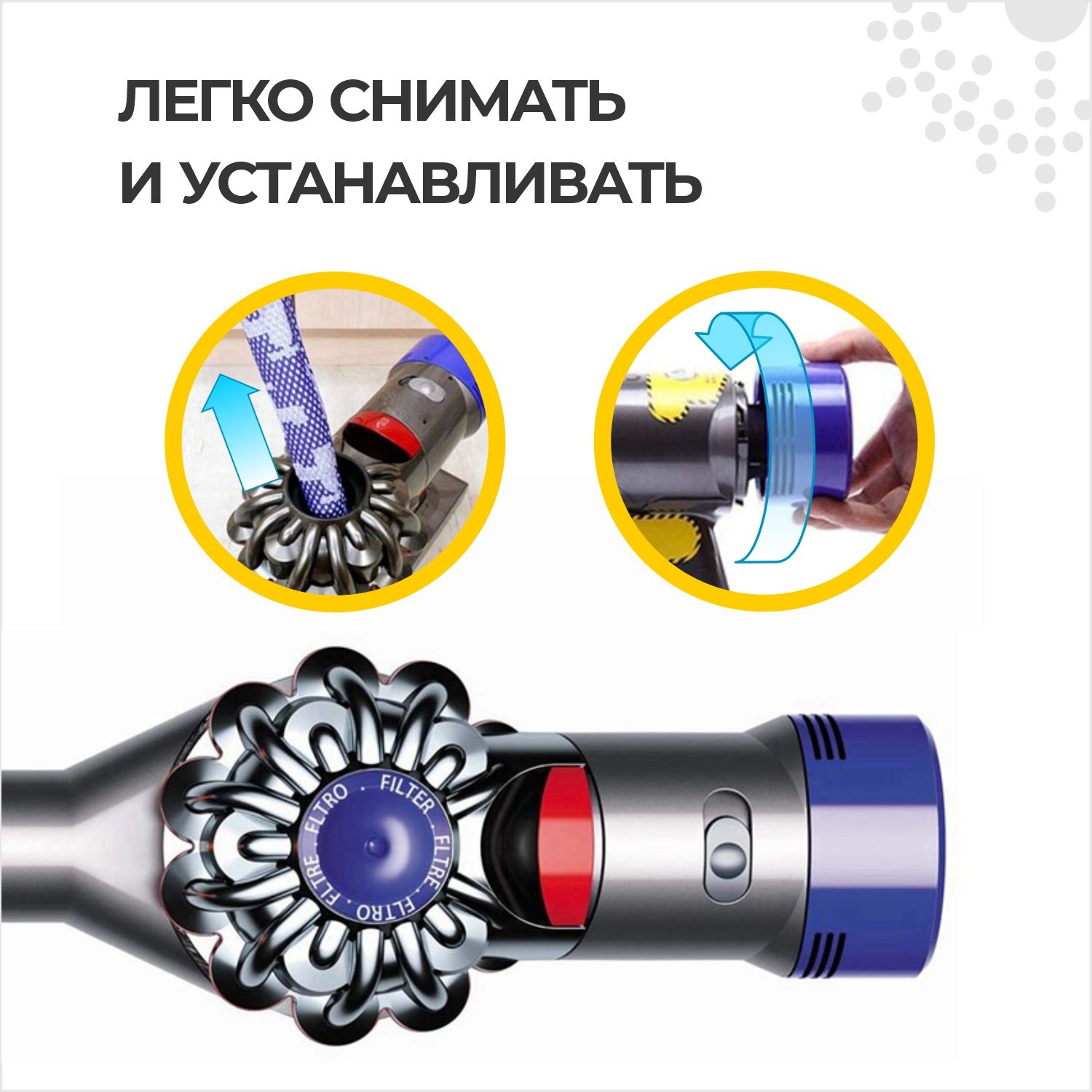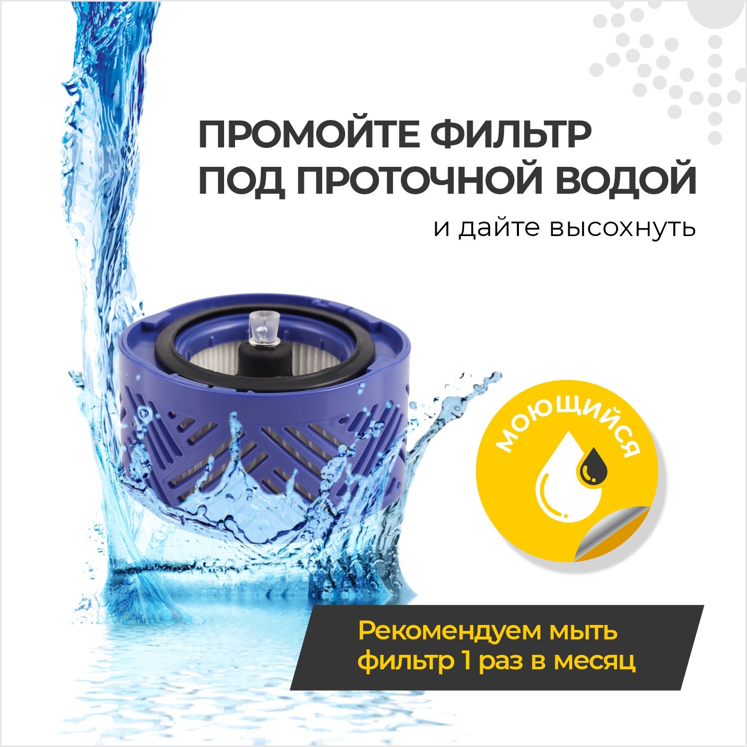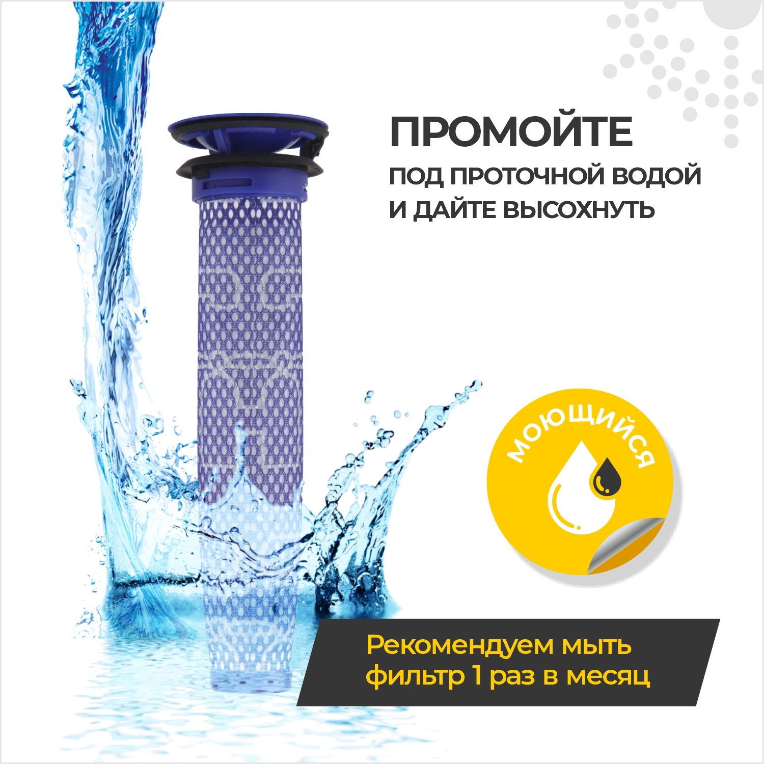 Фильтр для дайсон V6 легко извлекается и быстро устанавливается. Можно промывать под водой. Рекомендуется промывать нера фильтр для пылесоса в прохладной воде без использования моющих средств раз в месяц. Высушить перед уборкой.