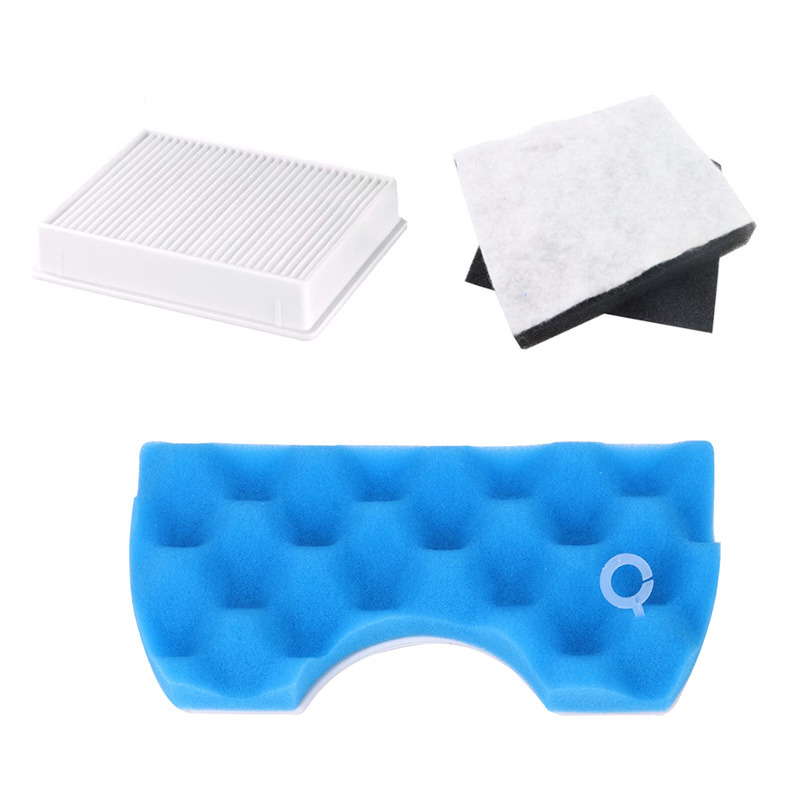 В наборе 3 фильтров: 1)Губчатый фильтр защищает мотор пылесоса от попадания крупных частиц пыли 2)HEPA фильтр защищает мотор пылесоса от попадания мелких частиц пыли 3)Трехкомпонентный выходной фильтр: двойной губчатый и микрофильтр