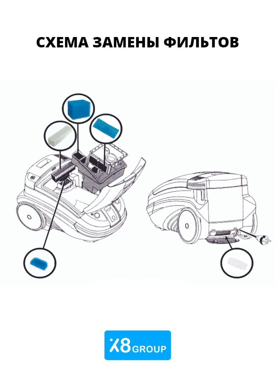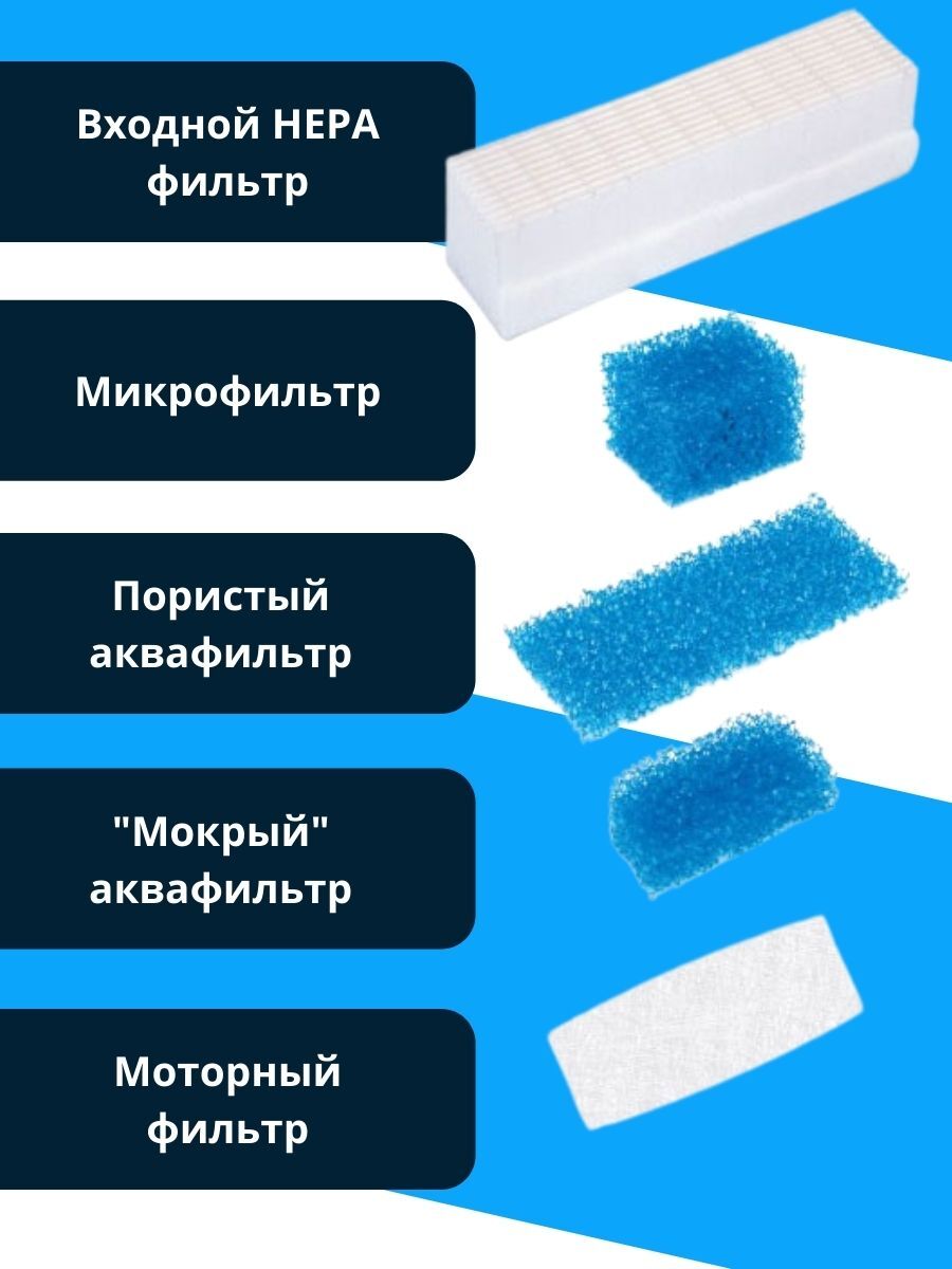 моторный фильтр - 1 шт.; микрофильтр - 1 шт.; HEPA-фильтр - 1 шт., фильтр аквасистемы - 2шт.