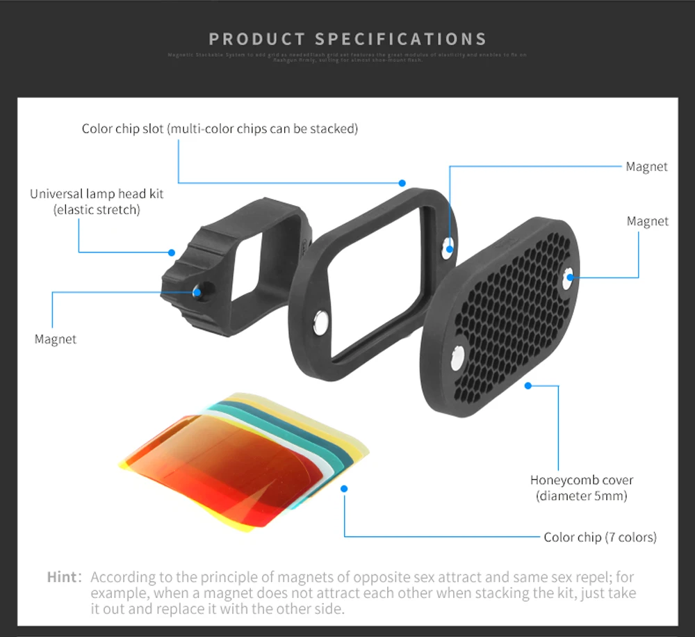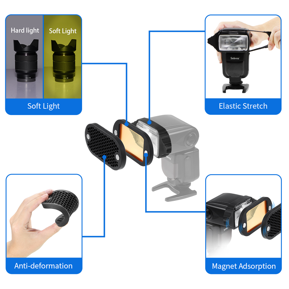 Набор фильтров для вспышки Selens Flash Speedlight Honeycomb Grid Diffuser Reflector