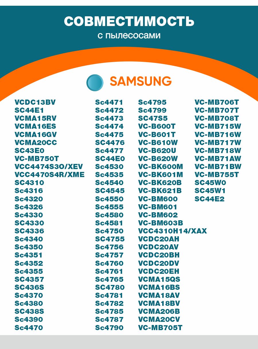 • Совместимость фильтров (для упрощения поиска модели, откройте товар в браузере и с помощью команды CTRL+F вбейте модель пылесоса):SC6520, SC6522, SC6530, SC6532, SC6533, SC6534, SC6535, SC6540, SC6542, SC6560, SC6562, SC6570, SC6572, SC6573 Twin Chamber System SC6630, SC6650, SC6657, SC6658 Twin Chamber System SC6752, SC6760, SC6762, SC6780, SC6782 Twin chamber Plus SC6860, SC6862, SC6890, SC6892 Twin chamber Plus SC65… Twin Chamber
