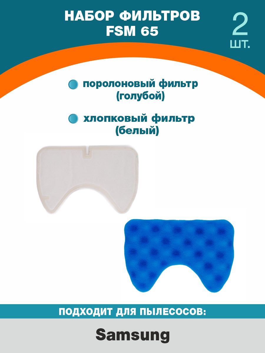 Набор фильтров FSM 65 для пылесоса Samsung (1х поролоновый фильтр, 1х хлопчатый фильтр)