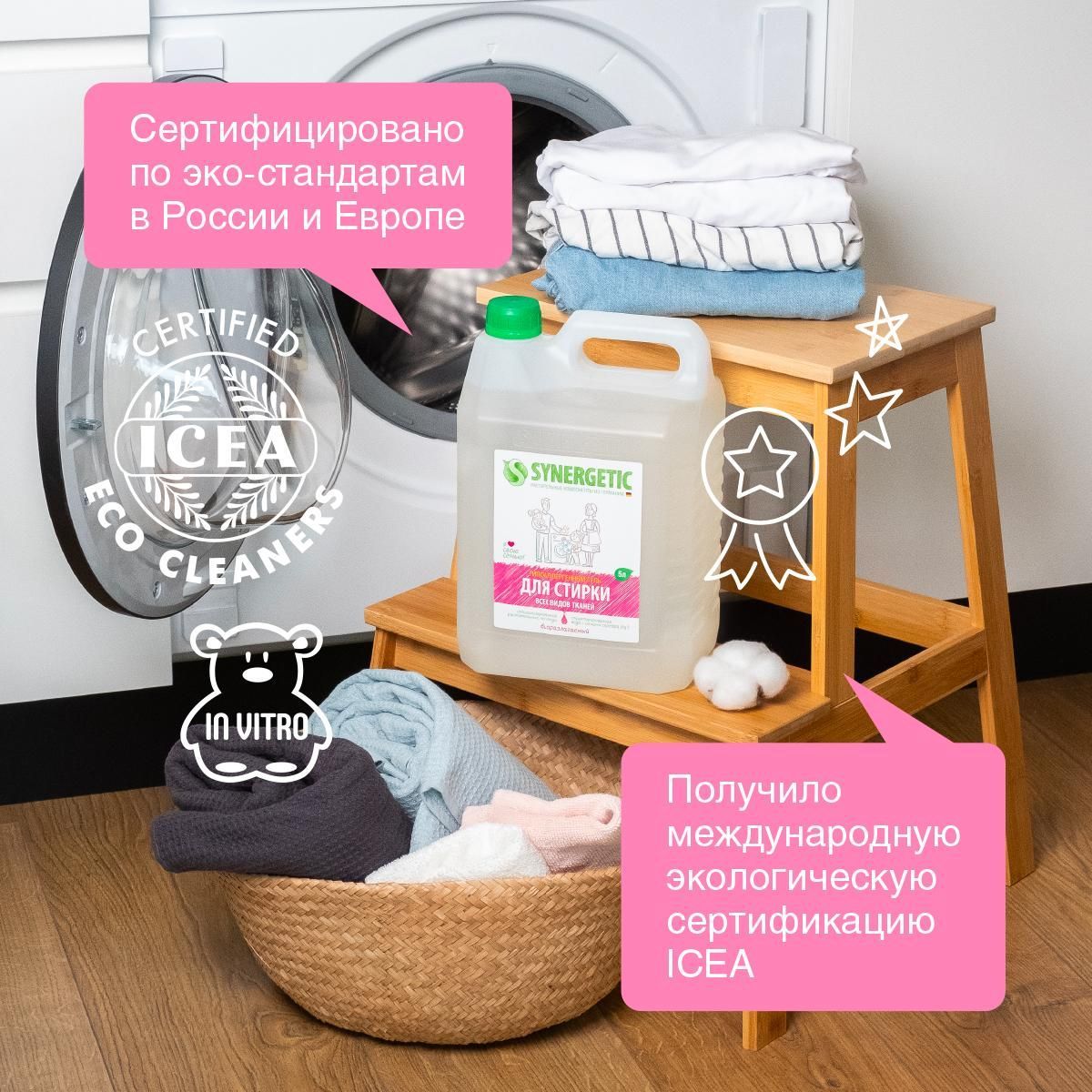 Канистра из перерабатываемого полиэтилена (02 HDPE, крышка 05 PP). Рекомендуем сортировать пустую тару и сдавать её на переработку в проект SYNERGETIC «ЭкоМобиль».РЕКОМЕНДАЦИИ по ПРИМЕНЕНИЮПри машинной стирке добавьте 30 мл геля на 5 кг белья (60 мл для сильно загрязненного белья или при жесткой воде) в специальный отсек, закройте его и включите стиральную машинку в соответствии с инструкцией. При ручной стирке добавьте 30 мл средства на 5 литров воды (60 мл для сильно загрязненного белья или при жесткой воде), затем положите белье. Соблюдайте режим стирки, указанный на ярлыке изделия. Рекомендуемая температура стирки 30-40°С. Не наносите гель непосредственно на ткань во избежание изменения цвета. Не стирайте цветные вещи при температуре выше 40°С. Не используйте для стирки шерсти, шелка, деликатных и мембранных тканей.