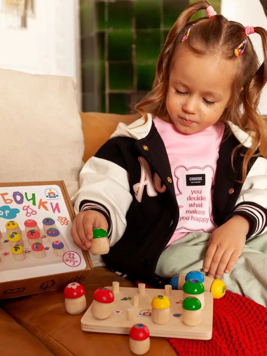 Набор Грибочки, Деревянный сортер, Счет, цвета, формы, игра