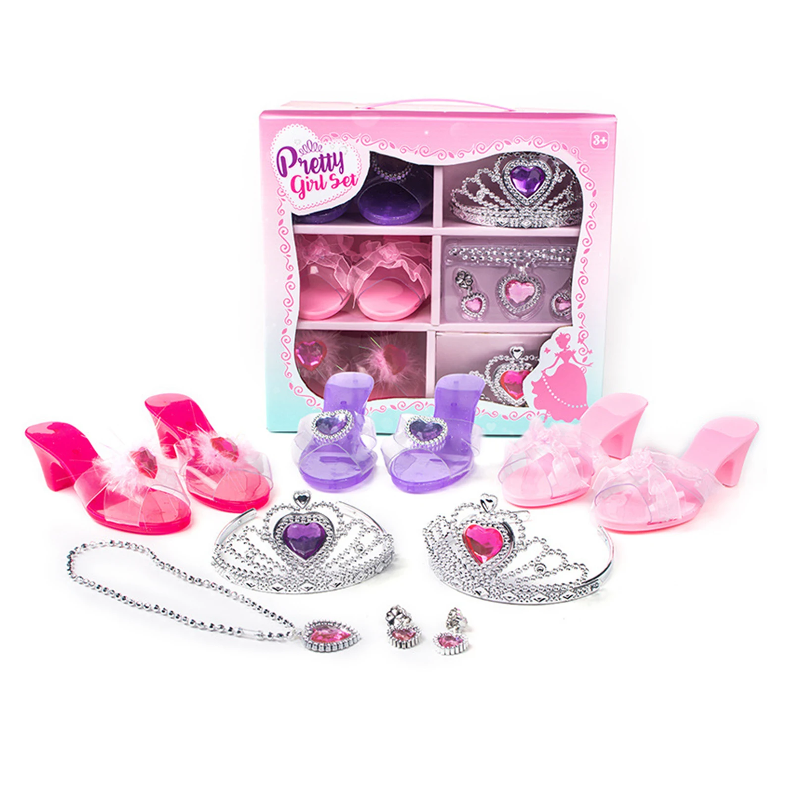 Набор игрушек для ролевых игр, ожерелье на высоком каблуке с кристаллами, Детская бижутерия, забавный набор для девочек, сказочная принцесса, наряжаемые гаджеты, в комплекте с рюкзаком