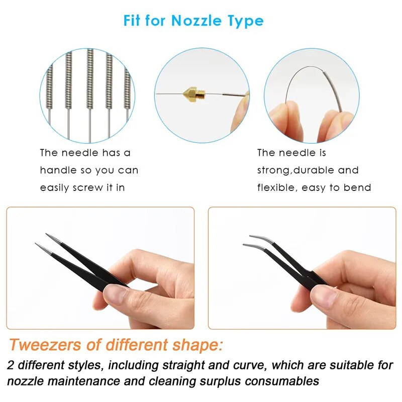 3D-принтеры Экструдер Насадка для чистки ящик для инструментов 0,15 мм 0,2 мм 0,25 мм 0,3 мм 0,35 мм 0,4 мм иглы кисть Пинцет для Эндер 3 Pro CR10