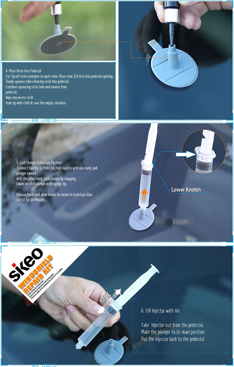 Набор для Ремонта Лобового стекла DIY предназначен для заполнения воздушной полости сильным проникающим клеем, который скрепляет свободное стекло и восстановит видимость.
