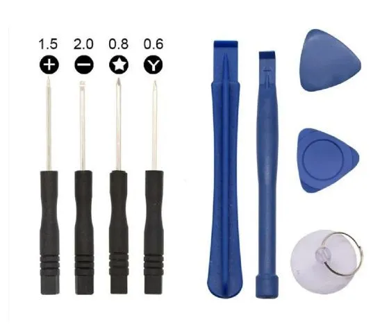Набор укомплектован четырьмя специальными отвертками, при их помощи вы без труда сможете извлекать винты из корпуса телефона. Отсоединение дисплея или сенсорного экрана производиться специальной присоской с металлическим кольцом, а также при использовании треугольного гребка. Монтажная лопатка поможет без особого труда отсоединить батарею от конструкции гаджета. Набор также укомплектован аккумуляторными наклейками для крепления батареи к задней части корпуса.