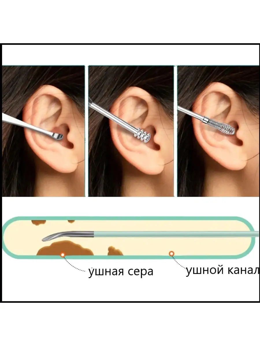 Набор инструментов (Палочки) для чистки ушей,удаление ушной пробки и серы,многоразовые,металлические