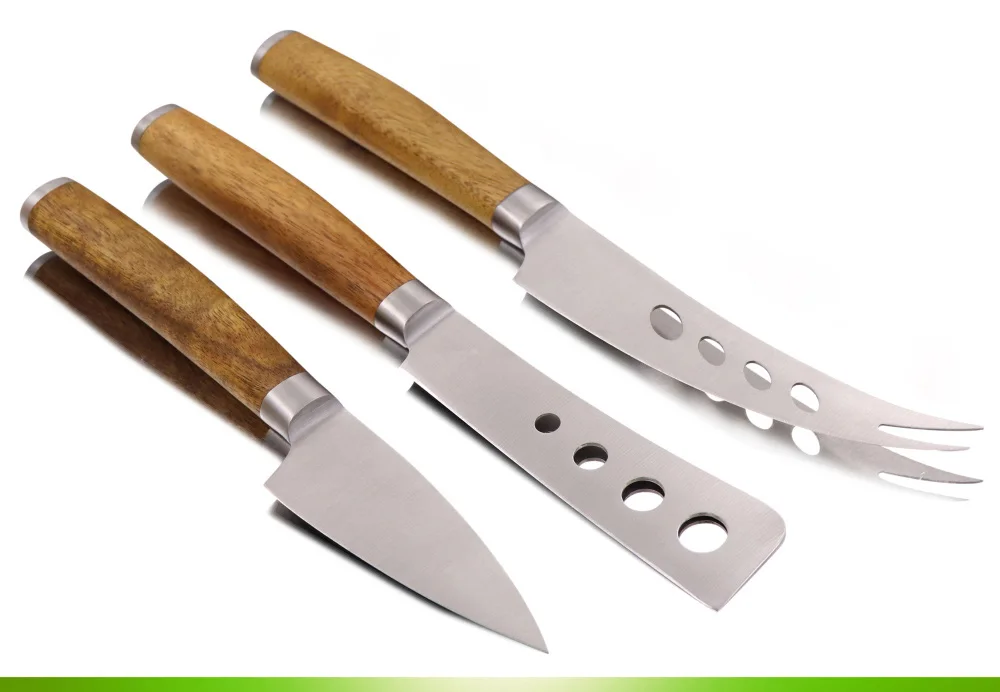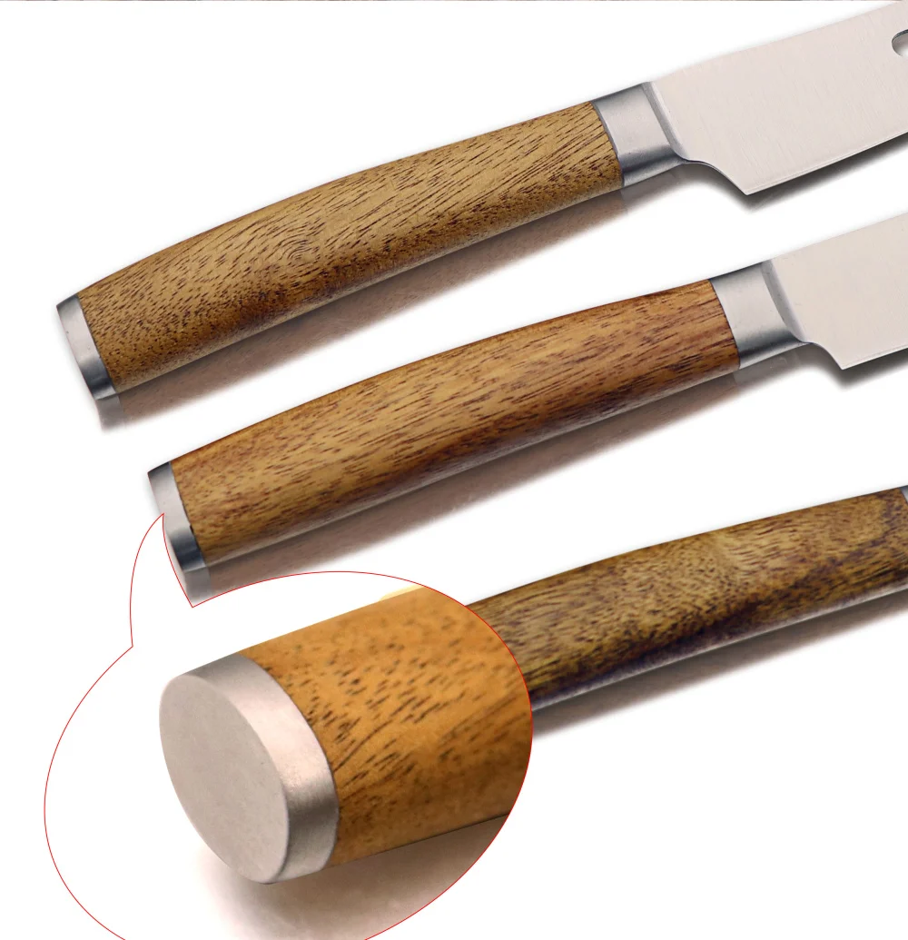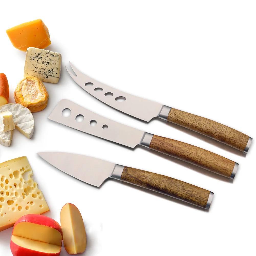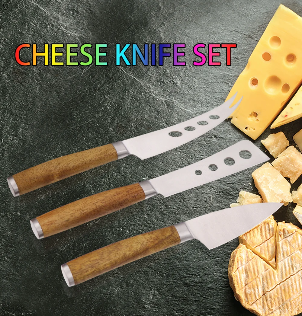 Jaswehome Набор из 3 ножей для сыра из нержавеющей стали с деревянной ручкой ножи для сыра с отверстиями гаджет для выпечки торта набор инструментов для сыра
