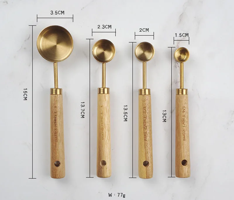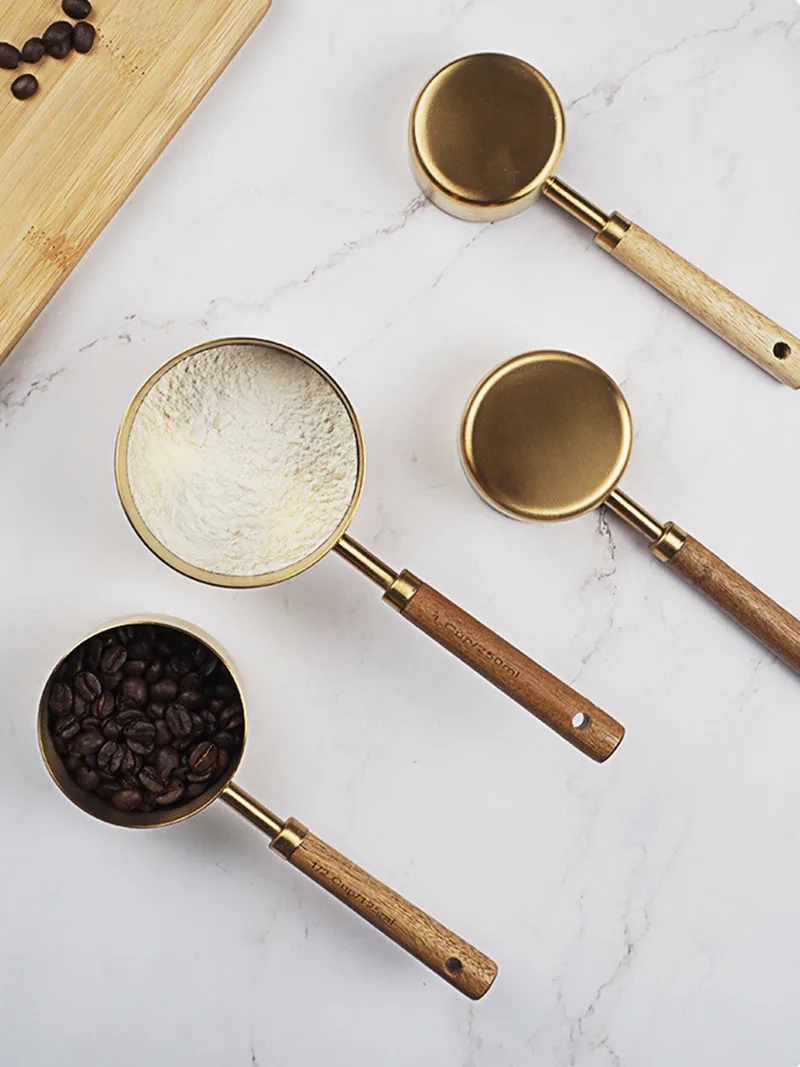 Набор из 4/8 мерных ложек из нержавеющей стали с деревянной ручкой